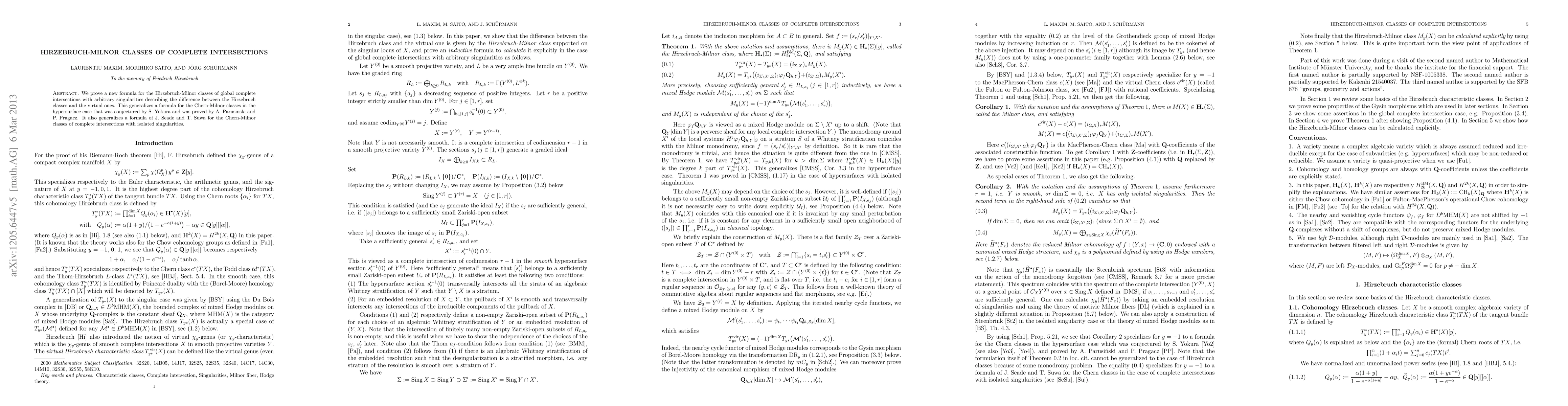 The paper presents a new formula for Hirzebruch-Milnor classes in global complete intersections, describing the difference between Hirzebruch classes and virtual classes, and generalizes previous results for hypersurfaces and isolated singularities.