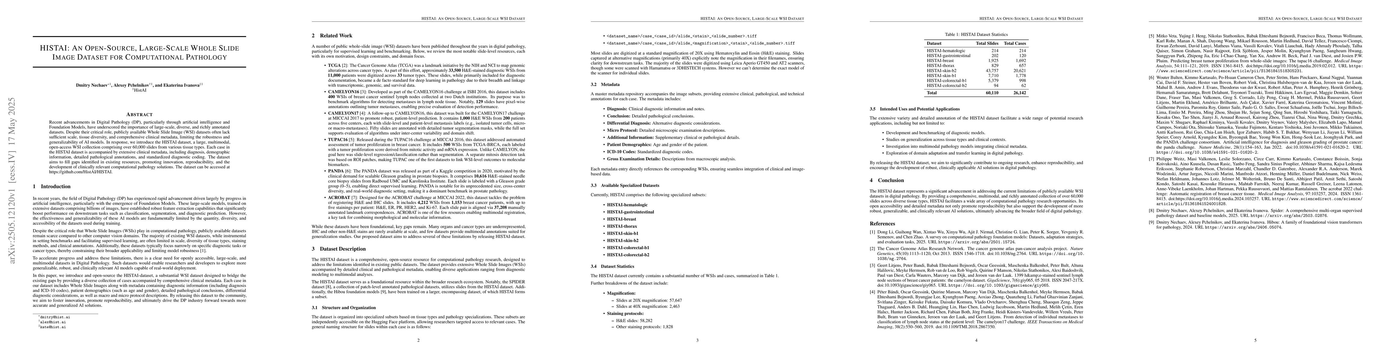 The research introduces HISTAI, a large-scale, multimodal, open-access Whole Slide Image (WSI) dataset with over 60,000 slides from various tissue types, accompanied by extensive clinical metadata.