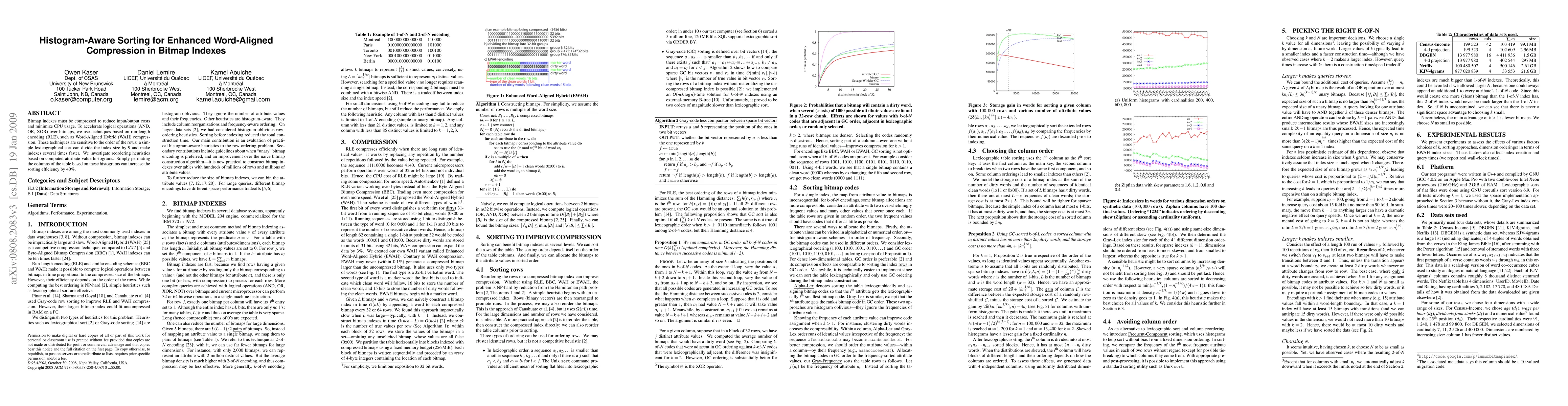 This paper explores histogram-aware sorting techniques to enhance the efficiency of word-aligned compression in bitmap indexes, achieving up to a 40% improvement in sorting efficiency and significant reductions in index size and CPU usage.