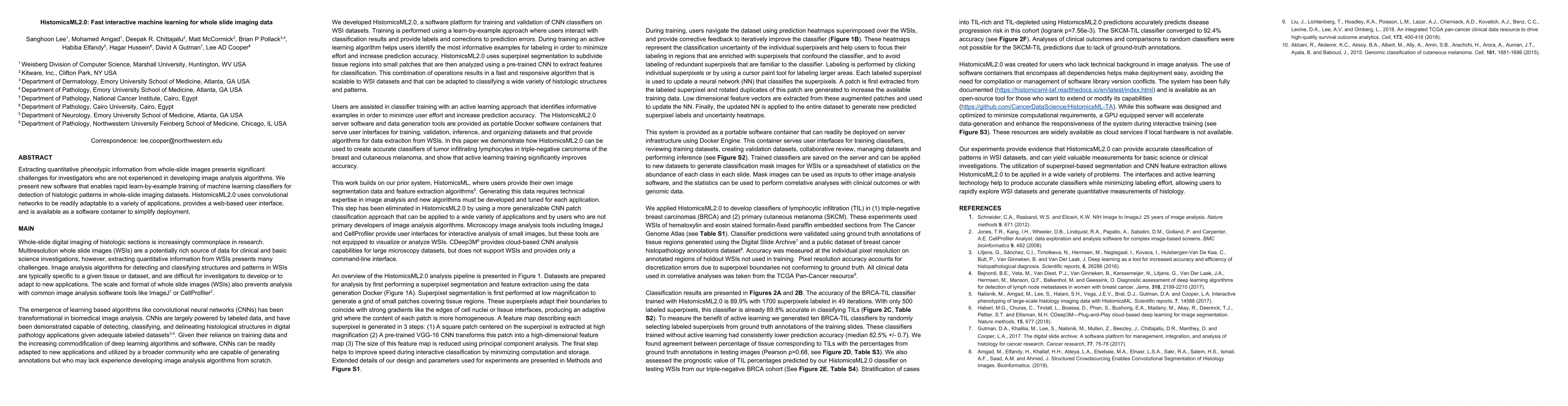 A new software tool called HistomicsML2.0 enables rapid training of machine learning classifiers for detecting histologic patterns in whole-slide images, making it easier for non-experts to analyze medical data.
