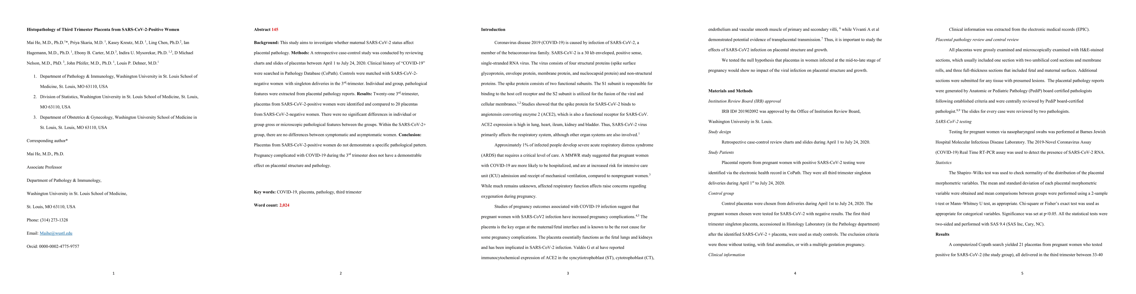 This study provides new insights into the effects of SARS-CoV-2 on placental pathology and highlights the need for further research in this area.