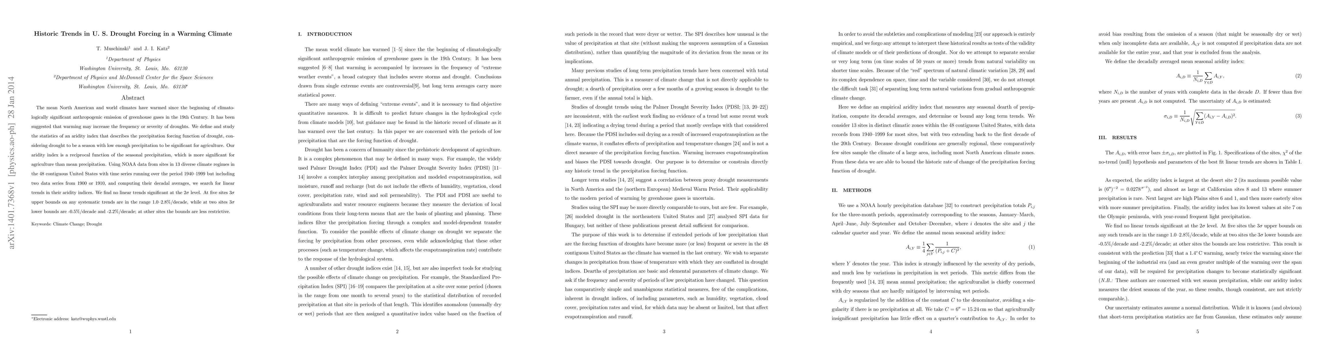 US drought trends show no significant increase in frequency or severity since the 19th Century, despite global warming, with some sites suggesting a possible slight decrease.