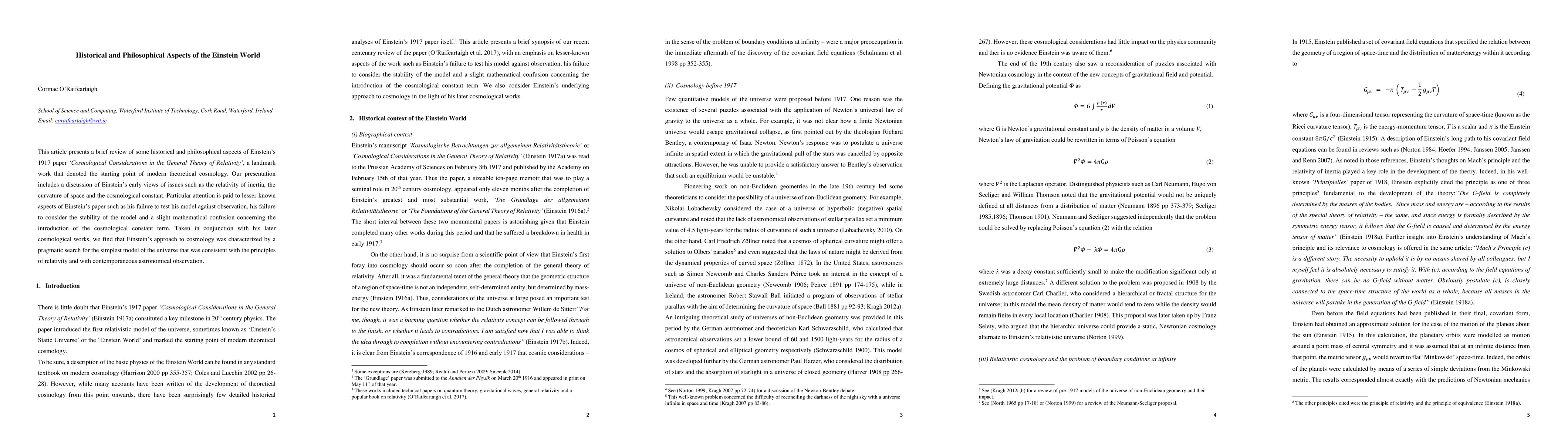 This paper reviews historical and philosophical aspects of Einstein's 1917 paper on general relativity, highlighting his pragmatic approach to cosmology, despite his oversights like neglecting observational testing and model stability. It underscores Einstein's quest for the simplest universe model consistent with relativity principles.