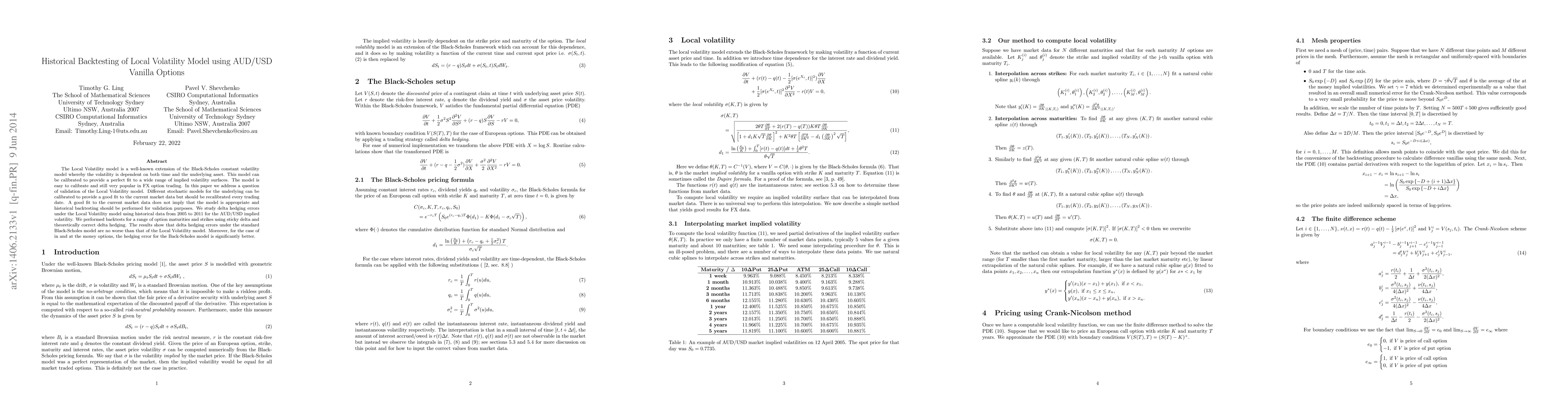 This paper validates the Local Volatility model against historical data from 2005 to 2011 for AUD/USD options, comparing delta hedging errors with the Black-Scholes model. Results indicate that the Black-Scholes model performs at least as well, and often better, than the Local Volatility model in hedging errors.