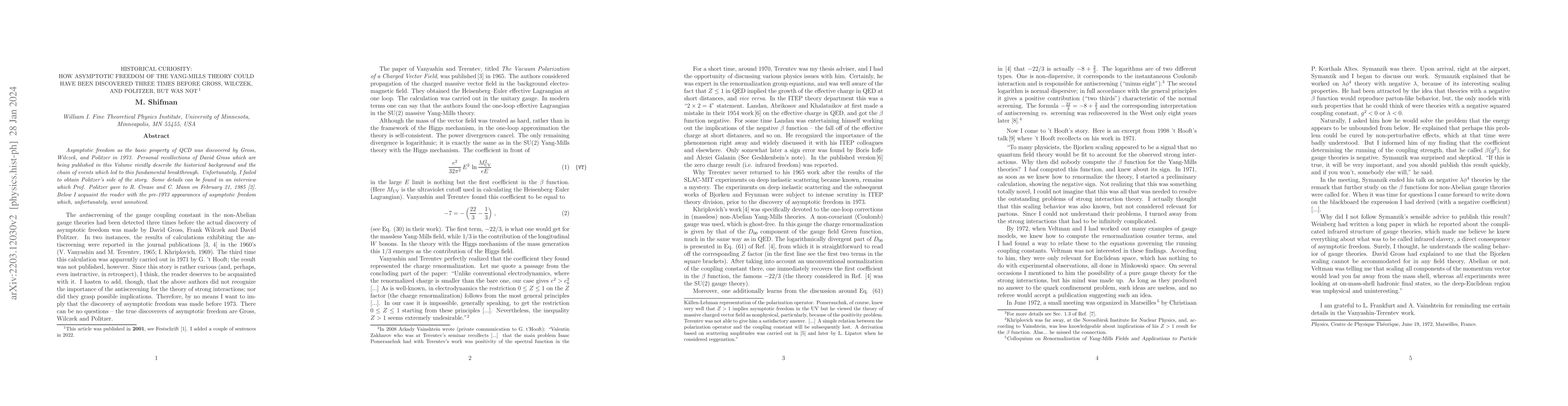 This article was published in 2001 in Festschrift "At the Frontier of Particle Physics; Handbook of QCD", Ed. M. Shifman, (World Scientific, Singapore, 2001), Vol. 1, page 126. Asymptotic freedom as the basic property of QCD was discovered by Gross, Wilczek, and Politzer in 1973. Personal recollections of David Gross which are being published in this Volume vividly describe the historical background and the chain of events which led to this fundamental breakthrough. Unfortunately, I failed to obtain Politzer's side of the story. Some details can be found in an interview which Prof. Politzer gave to R. Crease and C. Mann on February 21, 1985 \cite{DP}. Below I acquaint the reader with the pre-1973 appearances of asymptotic freedom which, unfortunately, went unnoticed