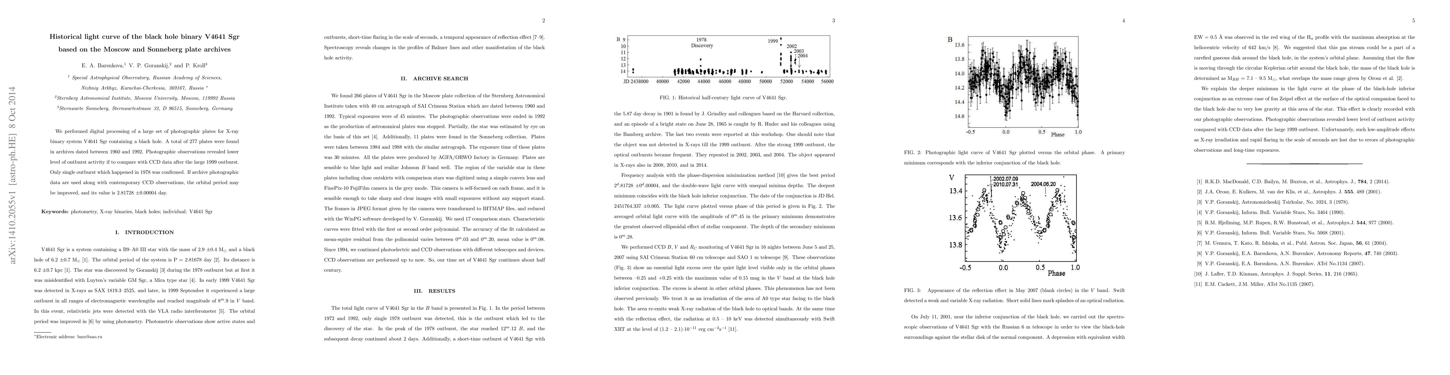 A team analyzed old photographic plates to confirm the orbital period of V4641 Sgr's black hole binary system, finding a possible shorter duration than previously thought.