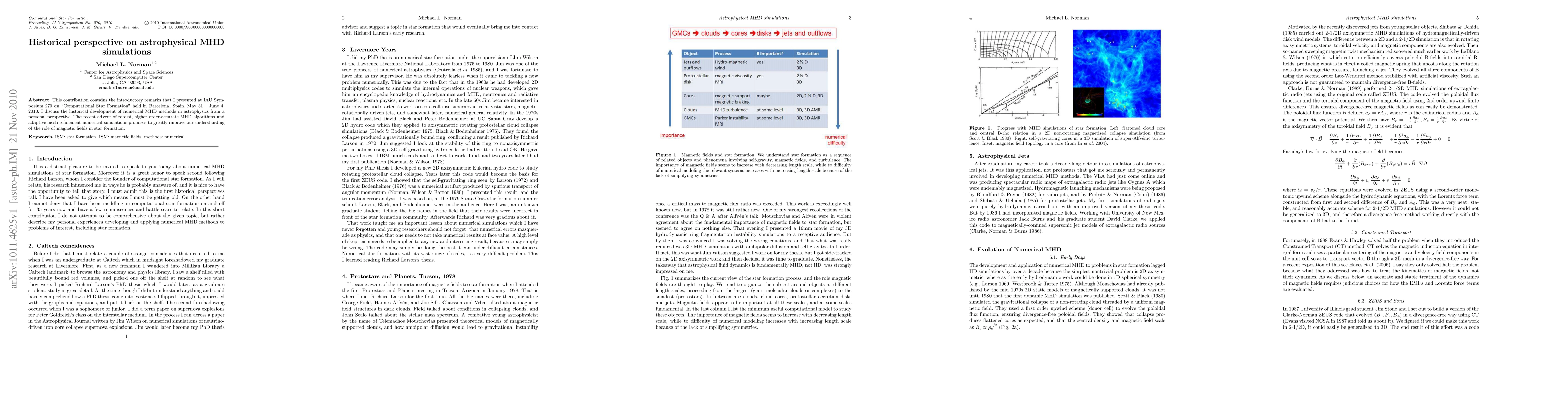 This contribution contains the introductory remarks that I presented at IAU Symposium 270 on ``Computational Star Formation" held in Barcelona, Spain, May 31 -- June 4, 2010. I discuss the historical development of numerical MHD methods in astrophysics from a personal perspective. The recent advent of robust, higher order-accurate MHD algorithms and adaptive mesh refinement numerical simulations promises to greatly improve our understanding of the role of magnetic fields in star formation.