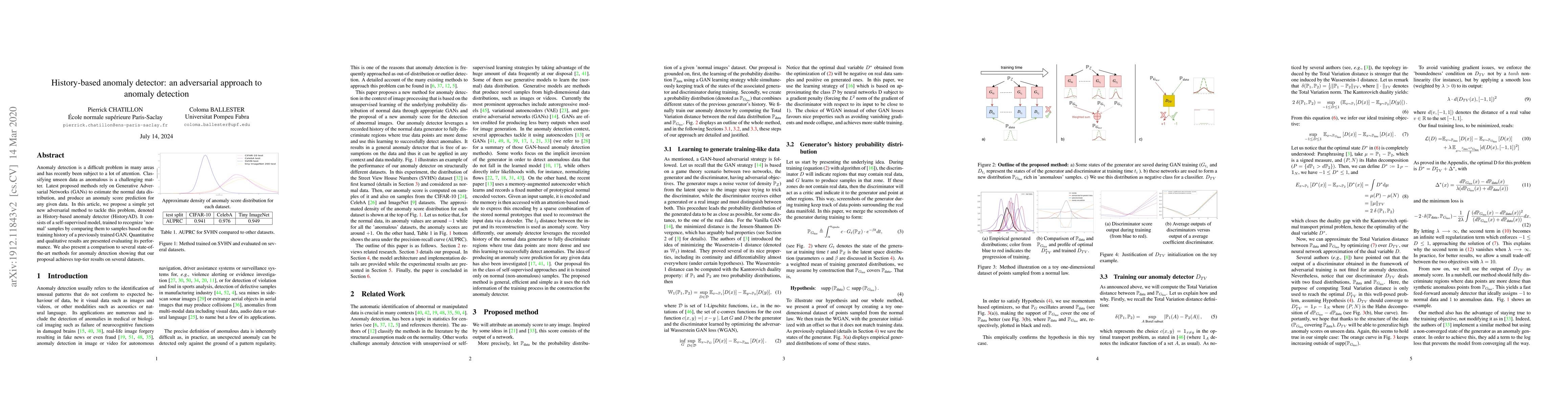 Researchers propose a new anomaly detection method called History-based Anomaly Detector, which uses a self-supervised model to recognize normal data samples based on training history of a previously trained GAN.