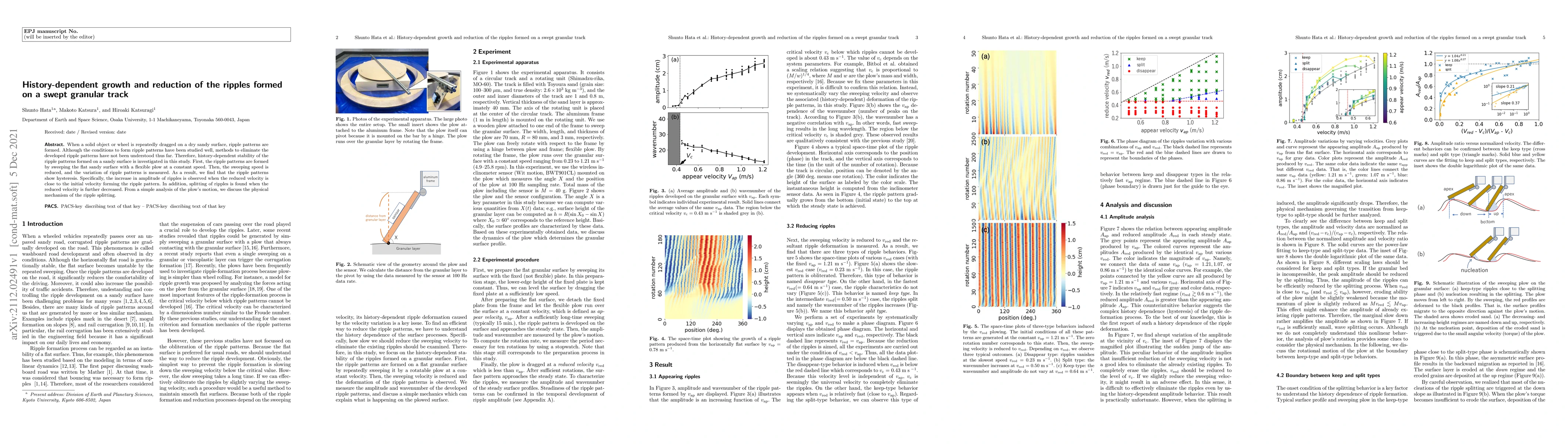 Researchers investigated how ripple patterns form on a sandy surface when a solid object is swept at different speeds, finding that the patterns exhibit hysteresis and can split under certain conditions.