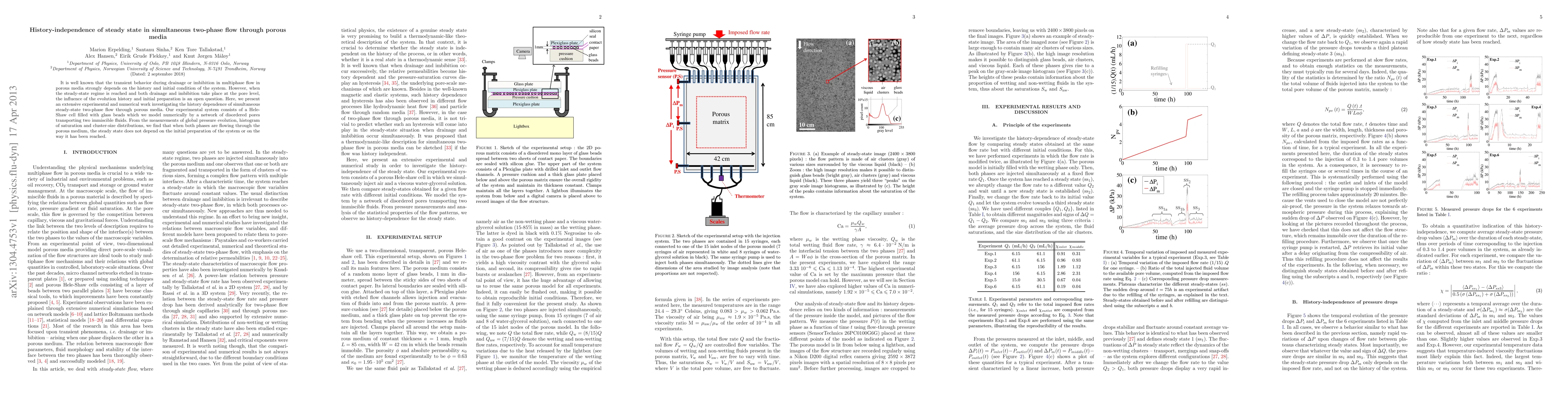 This study investigates whether the steady-state of simultaneous two-phase flow through porous media is history-dependent. Experimental and numerical results from a Hele-Shaw cell filled with glass beads show that the steady-state regime is independent of the system's initial conditions and evolution history.