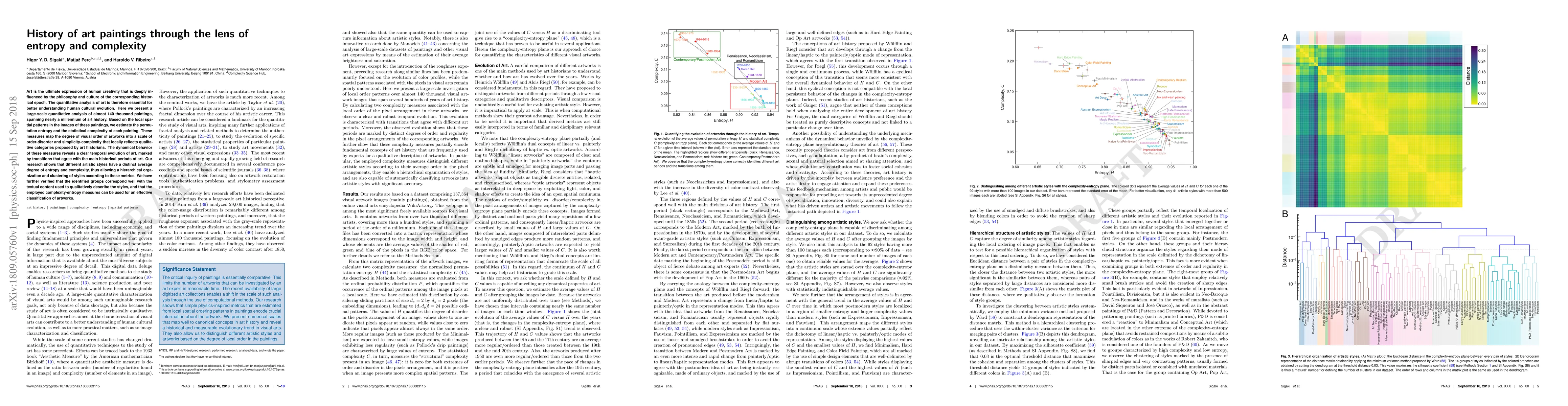 This paper quantitatively analyzes nearly 140,000 paintings to explore art's evolution through entropy and complexity measures, revealing distinct styles' order-disorder dynamics that align with historical art periods and classifications. The study demonstrates the potential of these metrics for classifying and understanding artistic styles.