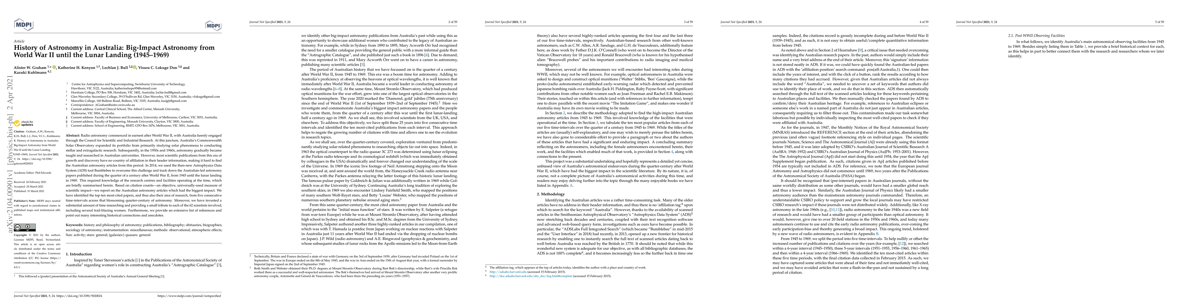 Radio astronomy commenced in earnest after World War II, with Australia keenly engaged through the Council for Scientific and Industrial Research. At this juncture, Australia's Commonwealth Solar Observatory expanded its portfolio from primarily studying solar phenomena to conducting stellar and extragalactic research. Subsequently, in the 1950s and 1960s, astronomy gradually became taught and researched in Australian universities. However, most scientific publications from this era of growth and discovery have no country of affiliation in their header information, making it hard to find the Australian astronomy articles from this period. In 2014, we used the then-new Astrophysics Data System (ADS) tool Bumblebee to overcome this challenge and track down the Australian-led astronomy papers published during the quarter of a century after World War II, from 1945 until the lunar landing in 1969. This required knowledge of the research centres and facilities operating at the time, which are briefly summarised herein. Based on citation counts -- an objective, universally-used measure of scientific impact -- we report on the Australian astronomy articles which had the biggest impact. We have identified the top-ten most-cited papers, and thus also their area of research, from five consecutive time-intervals across that blossoming quarter-century of astronomy. Moreover, we have invested a substantial amount of time researching and providing a small tribute to each of the 62 scientists involved, including several trail-blazing women. Furthermore, we provide an extensive list of references and point out many interesting historical connections and anecdotes.