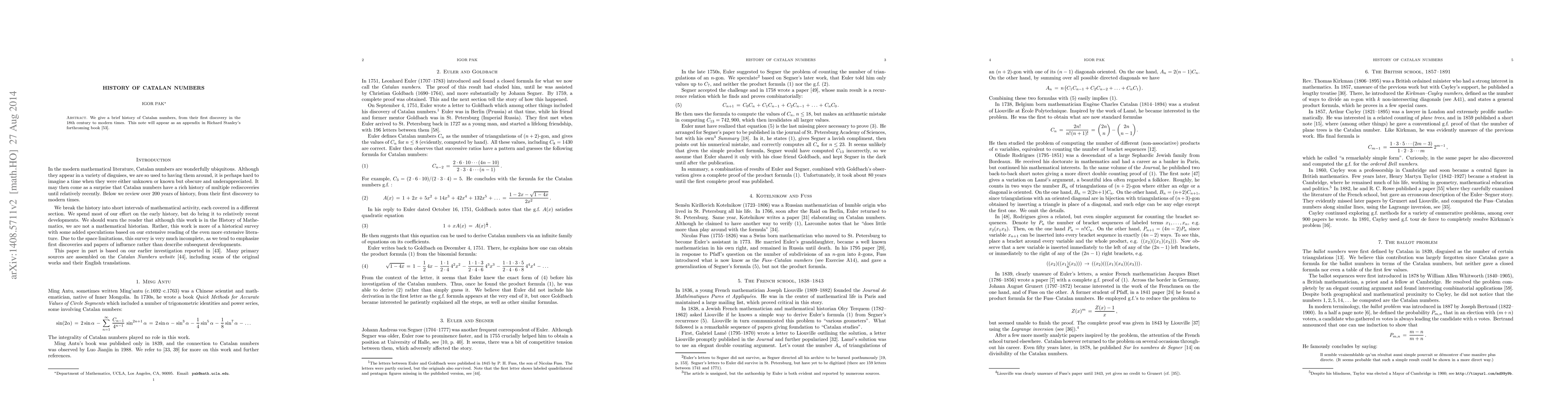 What makes this work novel is its focus on the historical and mathematical context of the Catalan numbers, providing new insights into their properties and behavior.