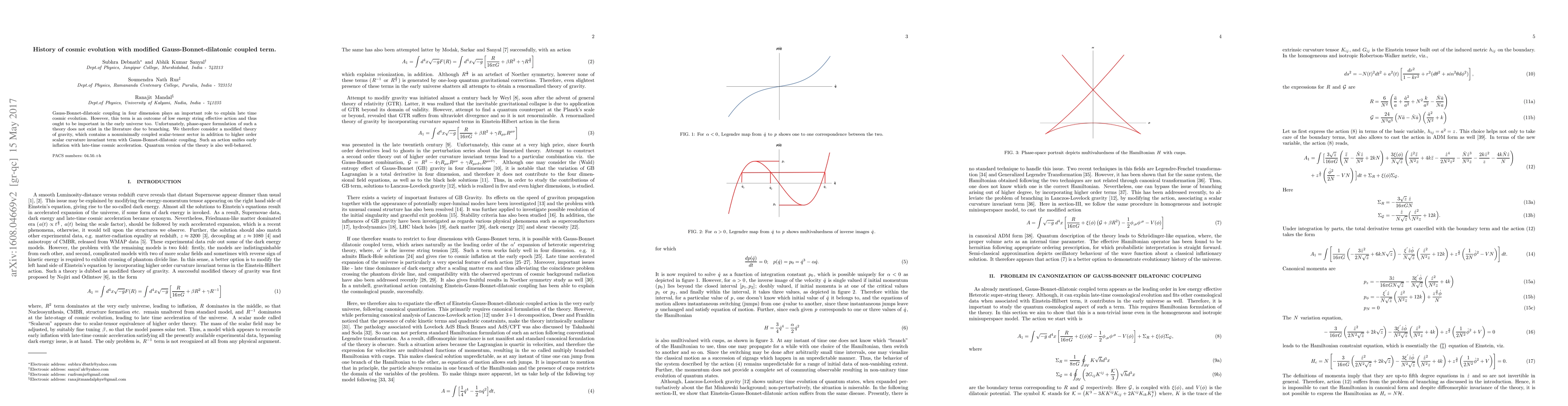 Gauss-Bonnet-dilatonic coupling in four dimension plays an important role to explain late time cosmic evolution. However, this term is an outcome of low energy string effective action and thus ought to be important in the early universe too. Unfortunately, phase-space formulation of such a theory does not exist in the literature due to branching. We therefore consider a modified theory of gravity, which contains a nonminimally coupled scalar-tensor sector in addition to higher order scalar curvature invariant term with Gauss-Bonnet-dilatonic coupling. Such an action unifies early inflation with late-time cosmic acceleration. Quantum version of the theory is also well-behaved.