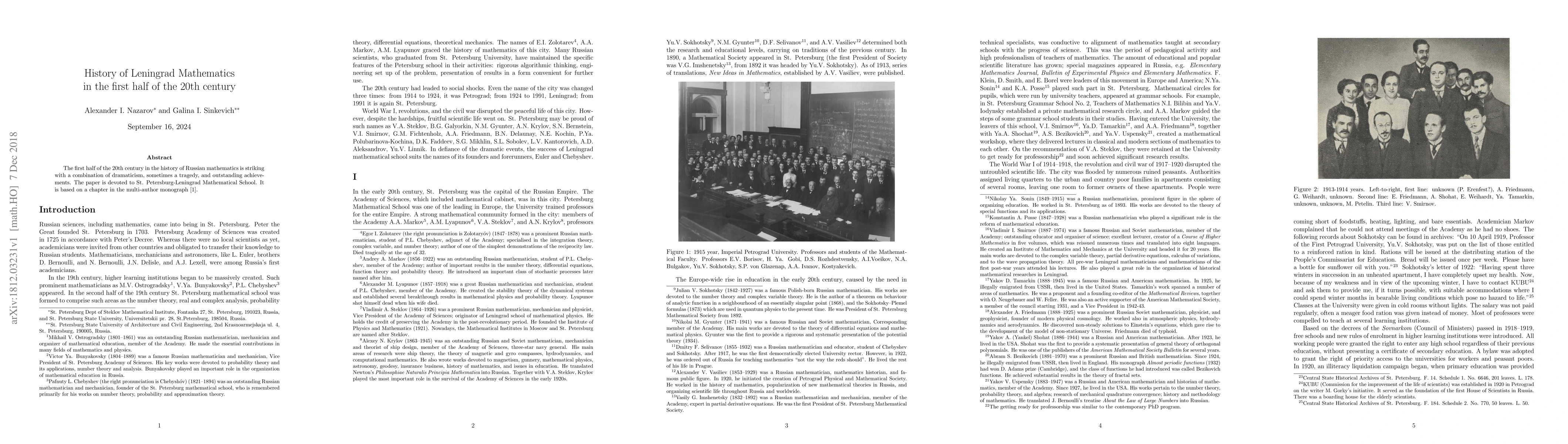 This paper chronicles the remarkable and often tumultuous history of Leningrad's mathematical school during the first half of the 20th century, highlighting both dramatic events and significant mathematical achievements. It draws from a chapter in the monograph "Mathematical Petersburg. History, science, sights" (2018).