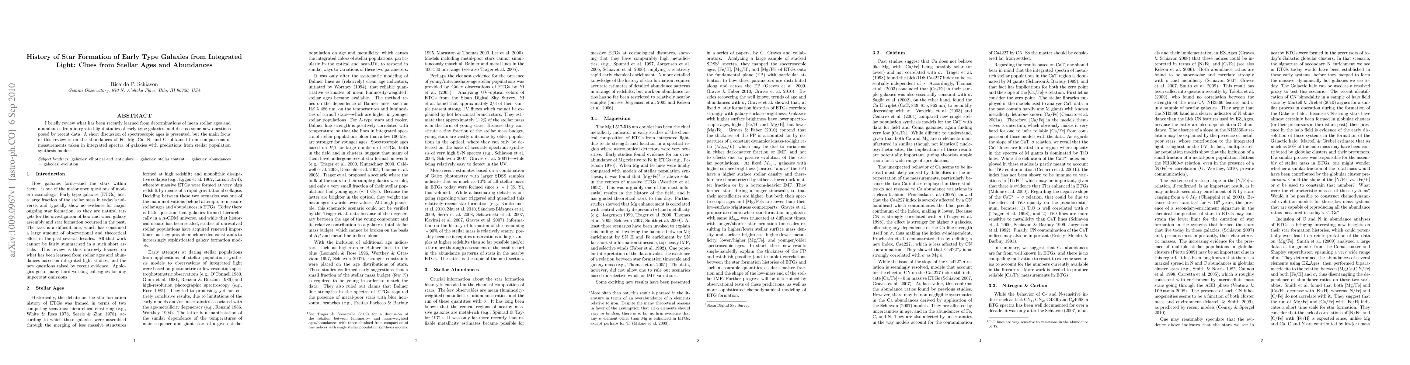 I briefly review what has been recently learned from determinations of mean stellar ages and abundances from integrated light studies of early-type galaxies, and discuss some new questions posed by recent data. A short discussion of spectroscopic ages is presented, but the main focus of this review is on the abundances of Fe, Mg, Ca, N, and C, obtained from comparisons of measurements taken in integrated spectra of galaxies with predictions from stellar population synthesis models.