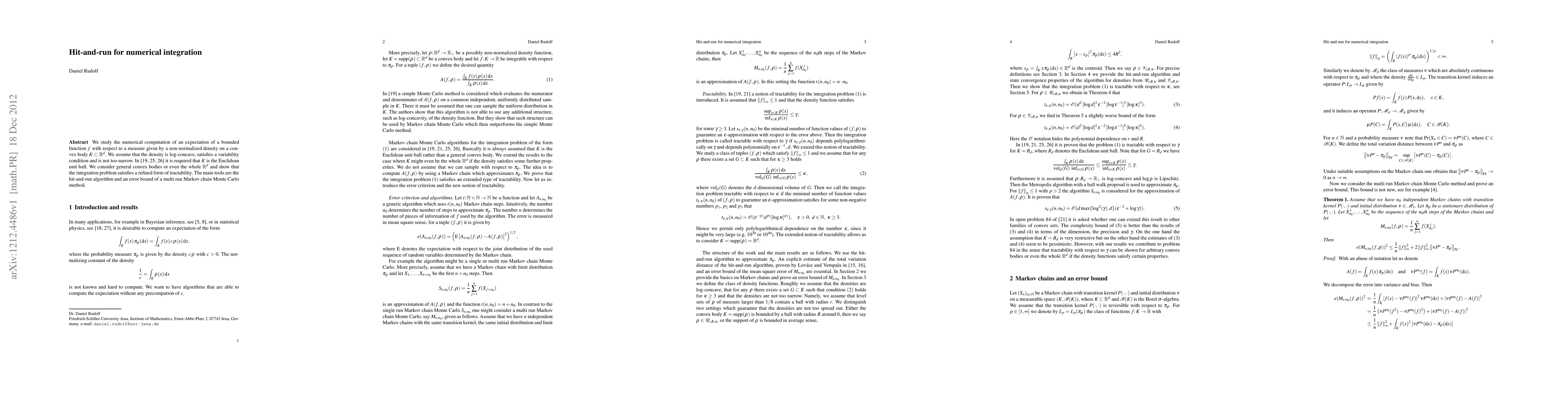 Researchers develop a method for efficiently computing expectations of bounded functions over non-normalized densities on convex bodies, leveraging the hit-and-run algorithm and error bounds from Markov chain Monte Carlo methods.