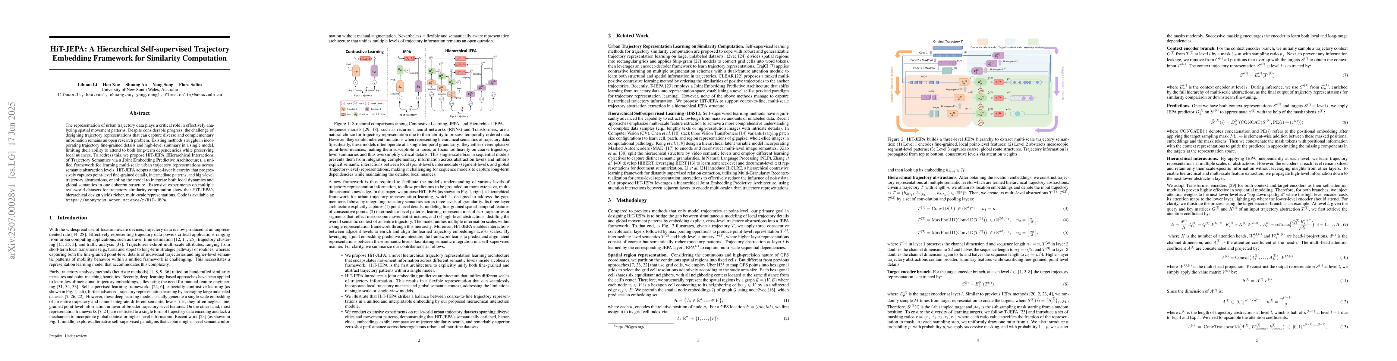 The representation of urban trajectory data plays a critical role in effectively analyzing spatial movement patterns. Despite considerable progress, the challenge of designing trajectory representations that can capture diverse and complementary information remains an open research problem. Existing methods struggle in incorporating trajectory fine-grained details and high-level summary in a single model, limiting their ability to attend to both long-term dependencies while preserving local nuances. To address this, we propose HiT-JEPA (Hierarchical Interactions of Trajectory Semantics via a Joint Embedding Predictive Architecture), a unified framework for learning multi-scale urban trajectory representations across semantic abstraction levels. HiT-JEPA adopts a three-layer hierarchy that progressively captures point-level fine-grained details, intermediate patterns, and high-level trajectory abstractions, enabling the model to integrate both local dynamics and global semantics in one coherent structure. Extensive experiments on multiple real-world datasets for trajectory similarity computation show that HiT-JEPA's hierarchical design yields richer, multi-scale representations. Code is available at: https://anonymous.4open.science/r/HiT-JEPA.