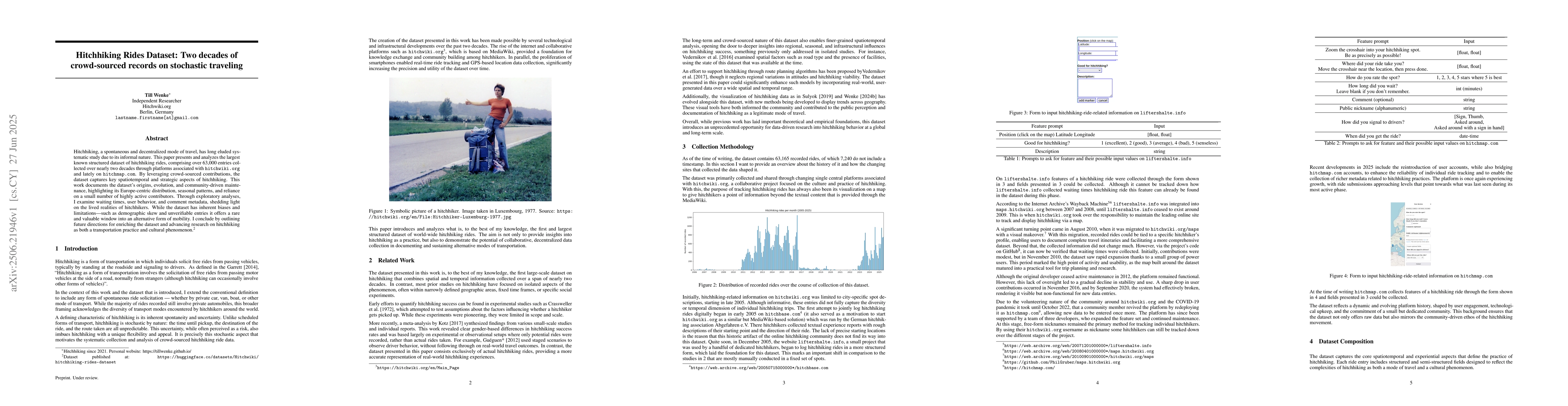 Hitchhiking, a spontaneous and decentralized mode of travel, has long eluded systematic study due to its informal nature. This paper presents and analyzes the largest known structured dataset of hitchhiking rides, comprising over 63,000 entries collected over nearly two decades through platforms associated with hitchwiki.org and lately on hitchmap.com. By leveraging crowd-sourced contributions, the dataset captures key spatiotemporal and strategic aspects of hitchhiking. This work documents the dataset's origins, evolution, and community-driven maintenance, highlighting its Europe-centric distribution, seasonal patterns, and reliance on a small number of highly active contributors. Through exploratory analyses, I examine waiting times, user behavior, and comment metadata, shedding light on the lived realities of hitchhikers. While the dataset has inherent biases and limitations - such as demographic skew and unverifiable entries it offers a rare and valuable window into an alternative form of mobility. I conclude by outlining future directions for enriching the dataset and advancing research on hitchhiking as both a transportation practice and cultural phenomenon.