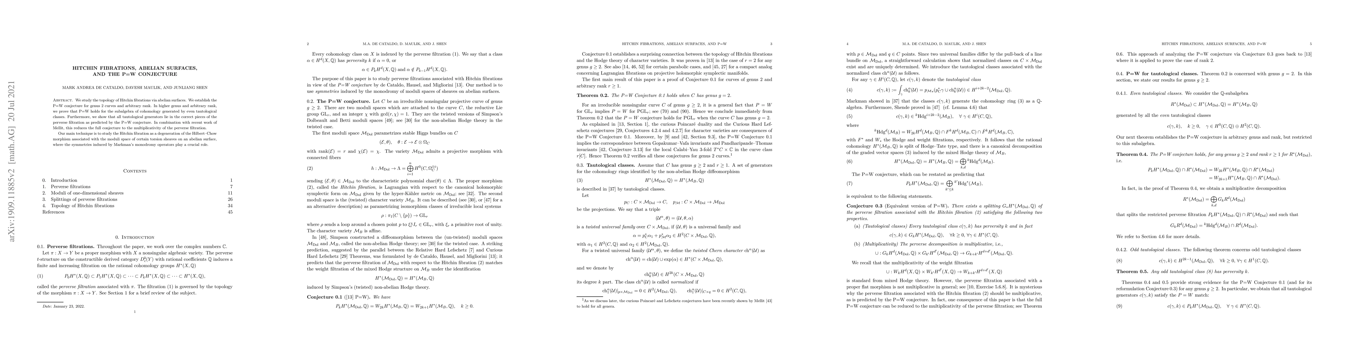 This paper establishes the P=W conjecture for genus 2 curves and arbitrary rank, proving it also for even tautological classes in higher genus. It uses the topology of Hitchin fibrations via abelian surfaces, focusing on the degeneration of the Hilbert-Chow morphism and Markman's monodromy operators.