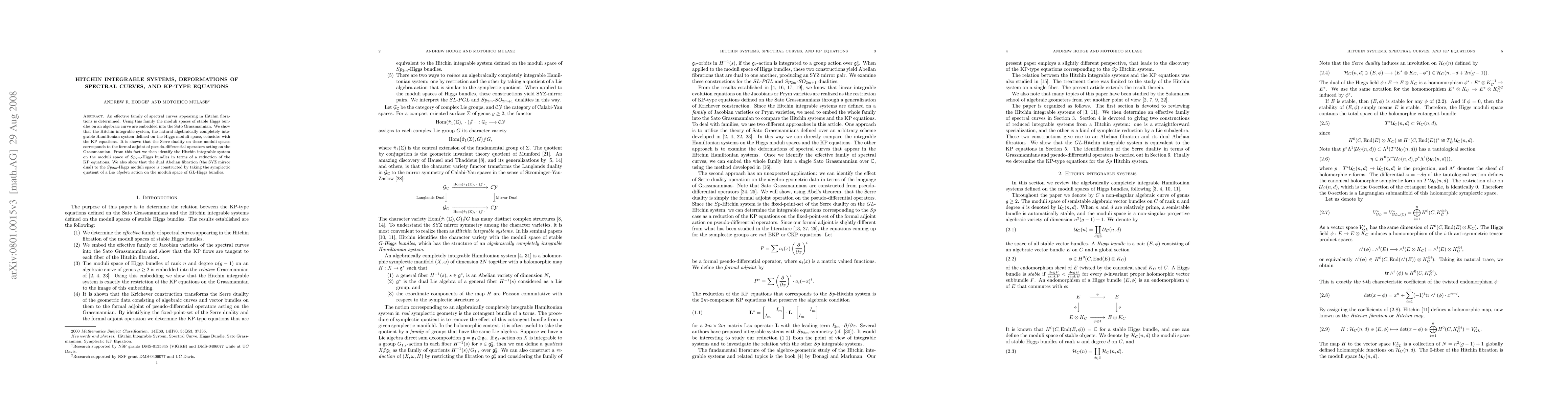 An effective family of spectral curves appearing in Hitchin fibrations is determined. Using this family the moduli spaces of stable Higgs bundles on an algebraic curve are embedded into the Sato Grassmannian. We show that the Hitchin integrable system, the natural algebraically completely integrable Hamiltonian system defined on the Higgs moduli space, coincides with the KP equations. It is shown that the Serre duality on these moduli spaces corresponds to the formal adjoint of pseudo-differential operators acting on the Grassmannian. From this fact we then identify the Hitchin integrable system on the moduli space of Sp(2m)-Higgs bundles in terms of a reduction of the KP equations. We also show that the dual Abelian fibration (the SYZ mirror dual) to the Sp(2m)-Higgs moduli space is constructed by taking the symplectic quotient of a Lie algebra action on the moduli space of GL-Higgs bundles.