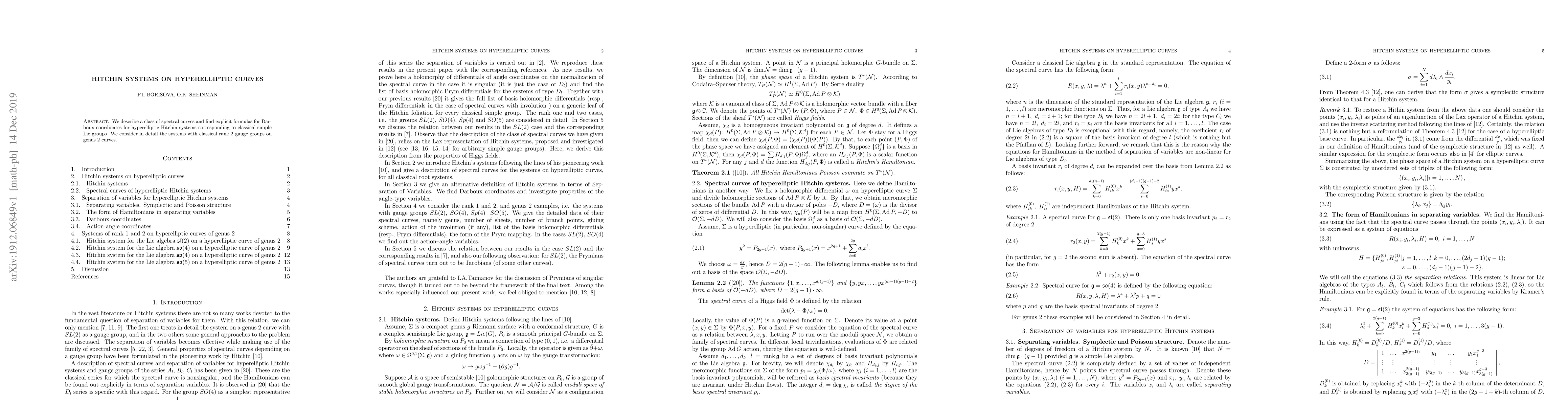 This paper explores hyperelliptic Hitchin systems and provides explicit formulas for Darboux coordinates for spectral curves associated with classical simple Lie groups. The focus is on rank 2 gauge groups on genus 2 curves.