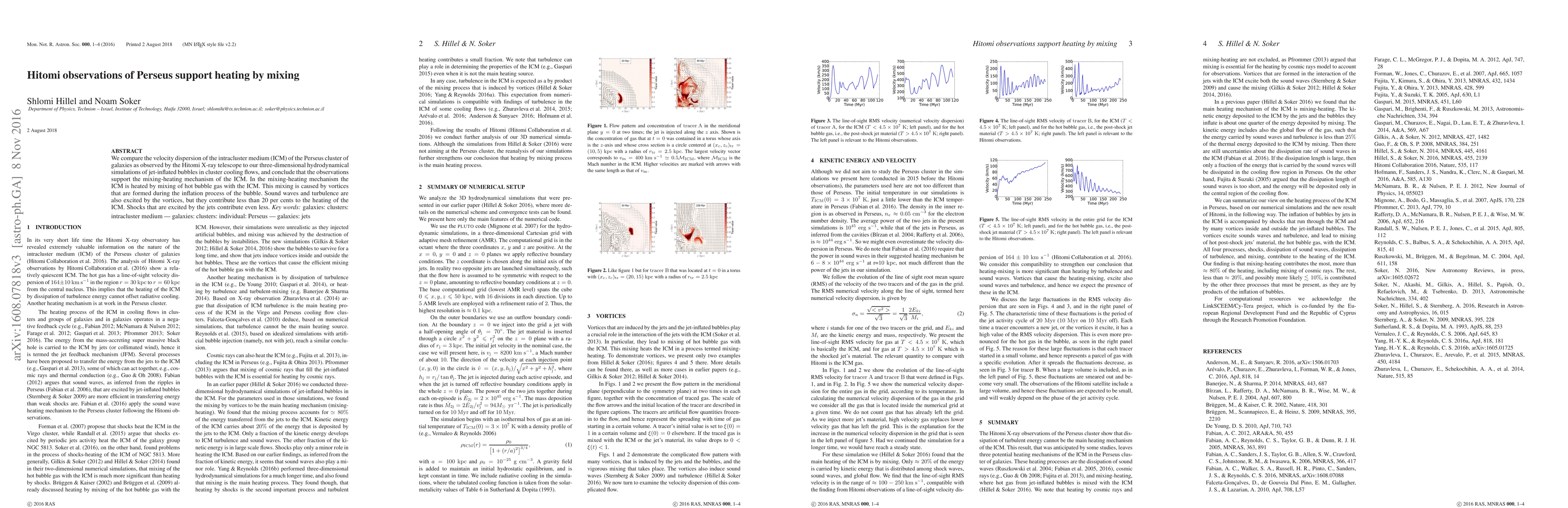 The Hitomi X-ray telescope observations of the Perseus cluster support the mixing-heating mechanism for intracluster medium heating, where hot bubble gas mixes with the ICM, primarily driven by vortices formed during bubble inflation. Secondary heating contributions from sound waves, turbulence, and shocks are minor.
