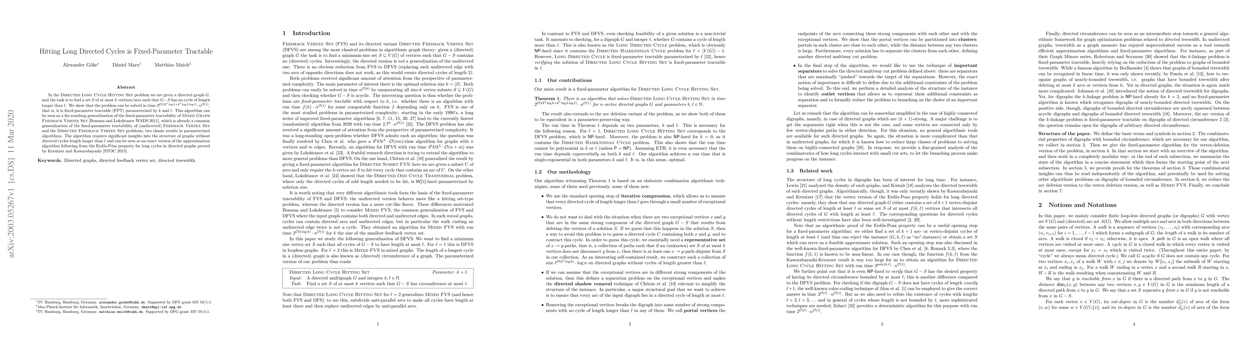 The paper demonstrates that the Directed Long Cycle Hitting Set problem is fixed-parameter tractable when parameterized by the number of vertices/arcs to remove ($k$) and the maximum cycle length ($\ell$). The algorithm achieves this in time $2^{\mathcal O(\ell k^3\log k + k^5\log k\log\ell)}\cdot n^{\mathcal O(1)}$, generalizing previous results for mixed graph feedback vertex sets.