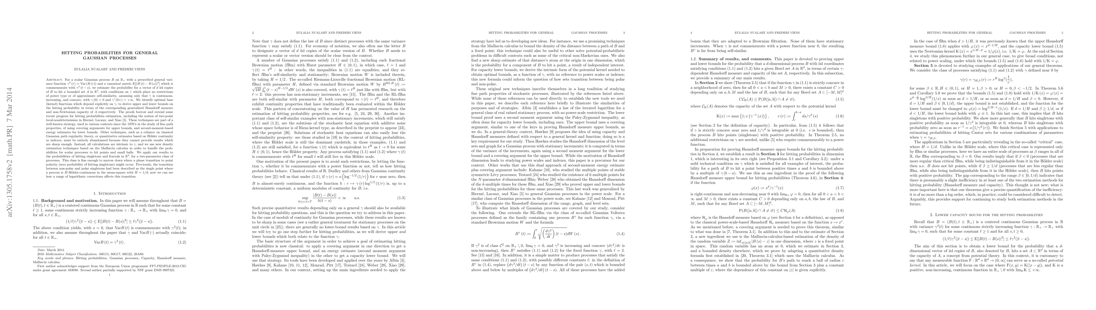 For a scalar Gaussian process $B$ on $\mathbb{R}_{+}$ with a prescribed general variance function $\gamma^{2}\left(r\right) =\mathrm{Var}\left(B\left(r\right) \right) $ and a canonical metric $\mathrm{E}[\left(B\left(t\right) -B\left(s\right) \right) ^{2}]$ which is commensurate with $\gamma^{2}\left(t-s\right) $, we estimate the probability for a vector of $d$ iid copies of $B$ to hit a bounded set $A$ in $\mathbb{R}^{d}$, with conditions on $\gamma$ which place no restrictions of power type or of approximate self-similarity, assuming only that $\gamma$ is continuous, increasing, and concave, with $\gamma\left(0\right) =0$ and $\gamma^{\prime}\left(0+\right) =+\infty$. We identify optimal base (kernel) functions which depend explicitly on $\gamma$, to derive upper and lower bounds on the hitting probability in terms of the corresponding generalized Hausdorff measure and non-Newtonian capacity of $A$ respectively. The proofs borrow and extend some recent progress for hitting probabilities estimation, including the notion of two-point local-nondeterminism in Bierm\'{e}, Lacaux, and Xiao \cite{Bierme:09}.