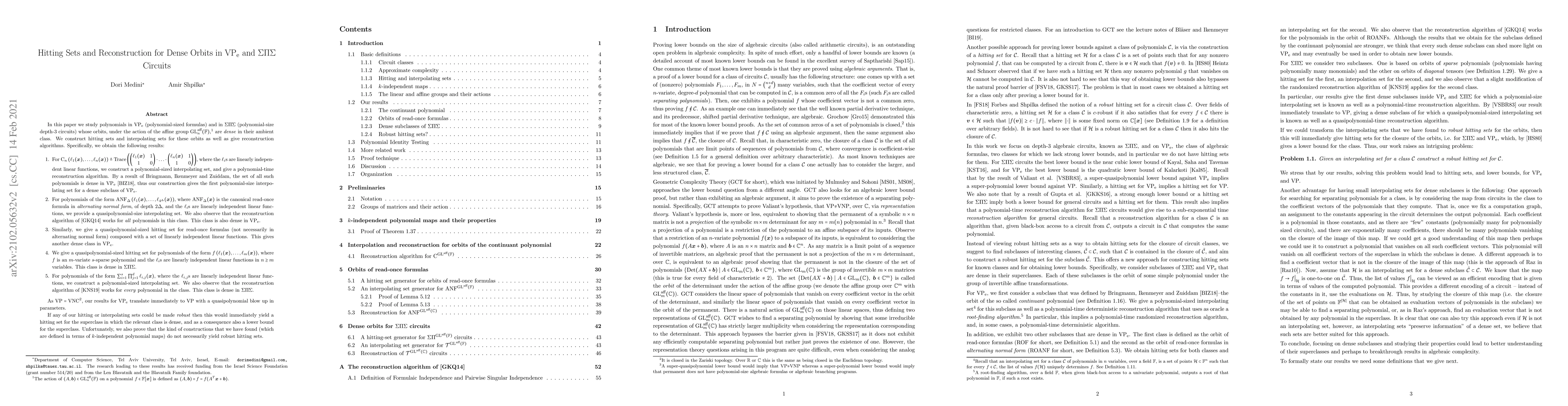 In this paper we study polynomials in $\text{VP}_e$ (polynomial-sized formulas) and in $\Sigma\Pi\Sigma$ (polynomial-size depth-$3$ circuits) whose orbits, under the action of the affine group $\text{GL}_n^{\text{aff}}(\mathbb{F})$, are $\mathit{dense}$ in their ambient class. We construct hitting sets and interpolating sets for these orbits as well as give reconstruction algorithms. As $\text{VP}=\text{VNC}^2$, our results for $\text{VP}_e$ translate immediately to $\text{VP}$ with a quasipolynomial blow up in parameters. If any of our hitting or interpolating sets could be made $\mathit{robust}$ then this would immediately yield a hitting set for the superclass in which the relevant class is dense, and as a consequence also a lower bound for the superclass. Unfortunately, we also prove that the kind of constructions that we have found (which are defined in terms of $k$-independent polynomial maps) do not necessarily yield robust hitting sets.