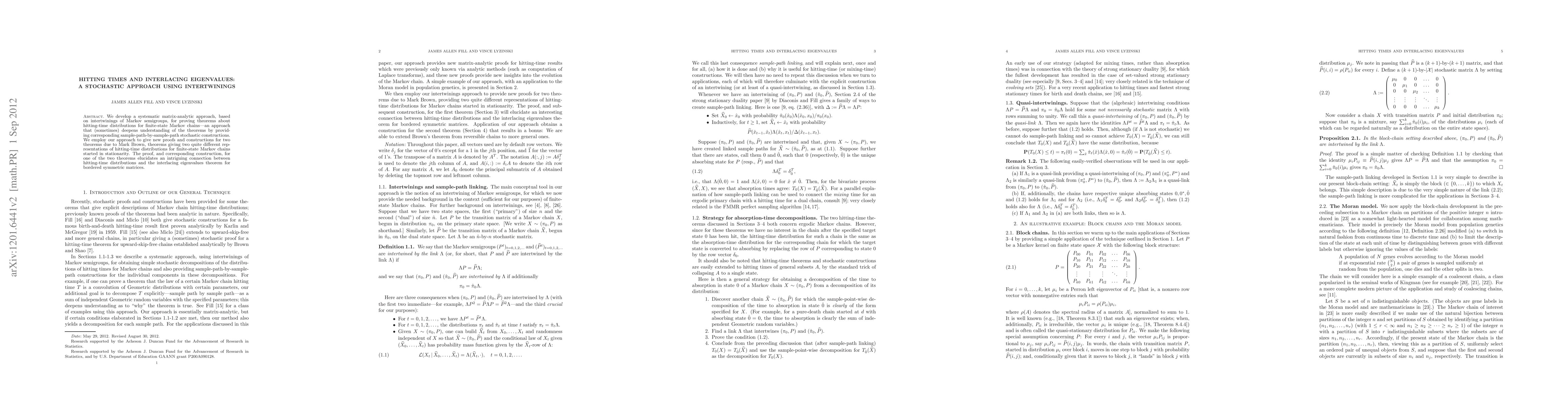 Researchers develop a new approach using intertwinings to study hitting times in Markov chains, providing new insights into the connection between hitting-time distributions and eigenvalue theorems.