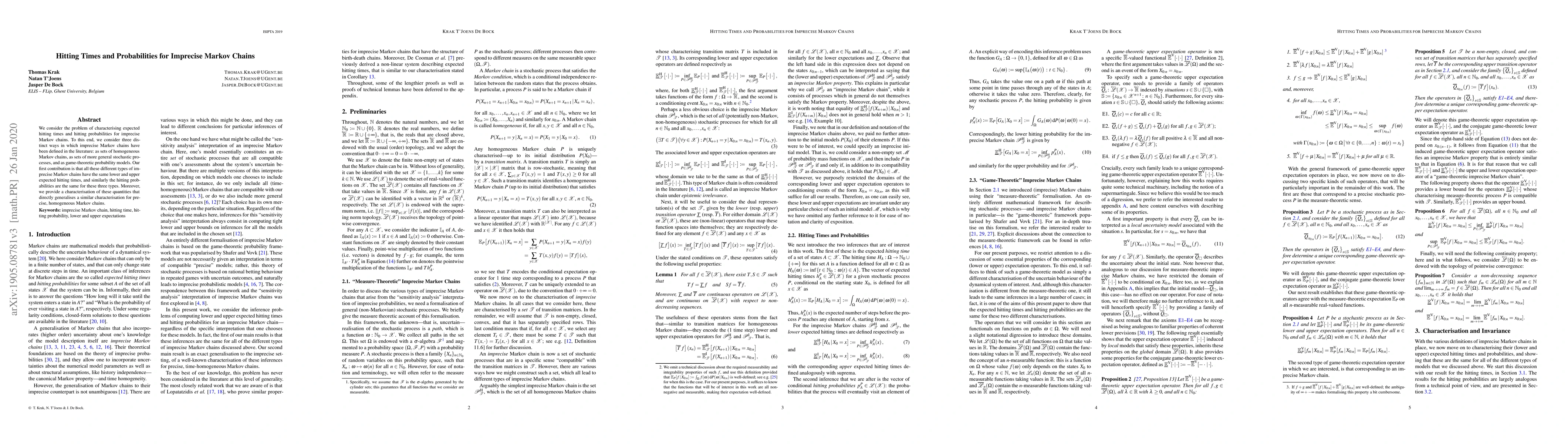 A Markov chain approach was used to model the hitting times of imprecise stochastic processes
