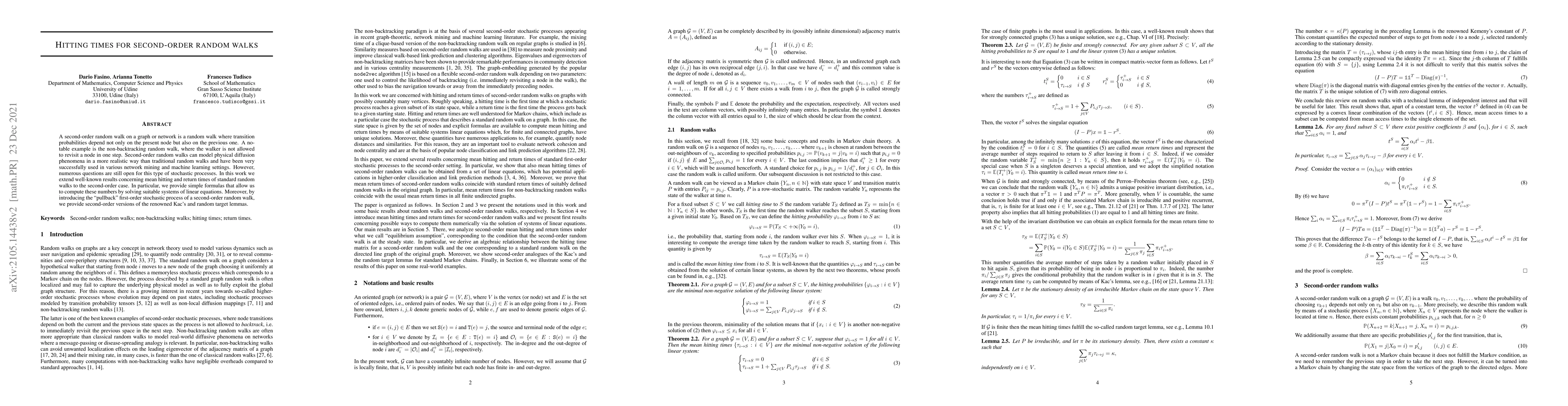 Researchers developed simple formulas to compute mean hitting and return times for second-order random walks on graphs and networks, extending known results from traditional random walks.