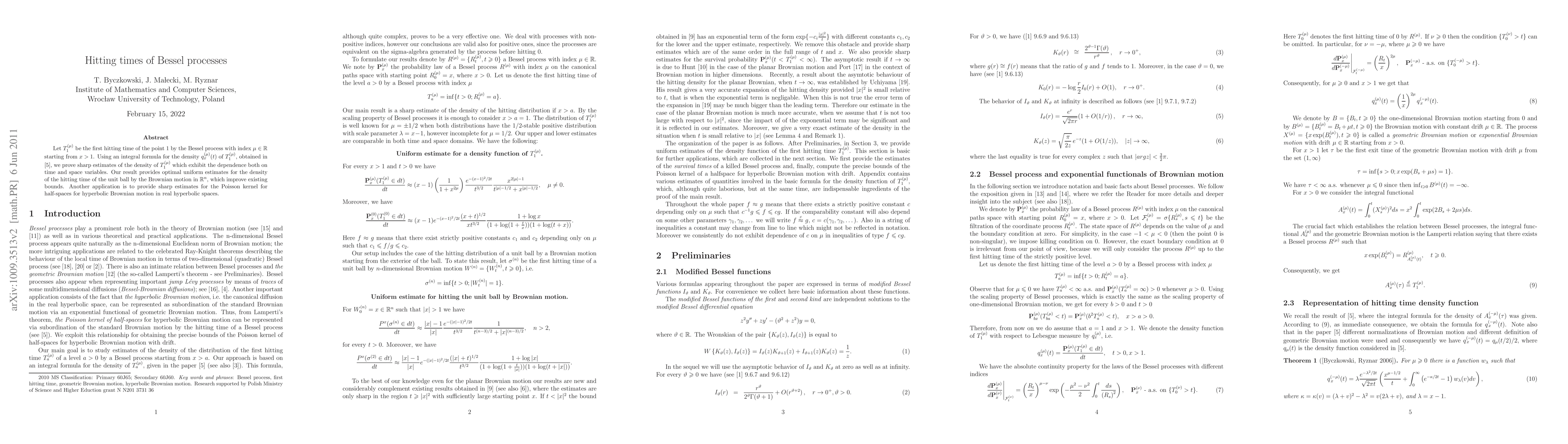 This research paper provides sharp estimates of the density of hitting times for Bessel processes, improving existing bounds and with implications for Brownian motion and hyperbolic Brownian motion in real hyperbolic spaces.