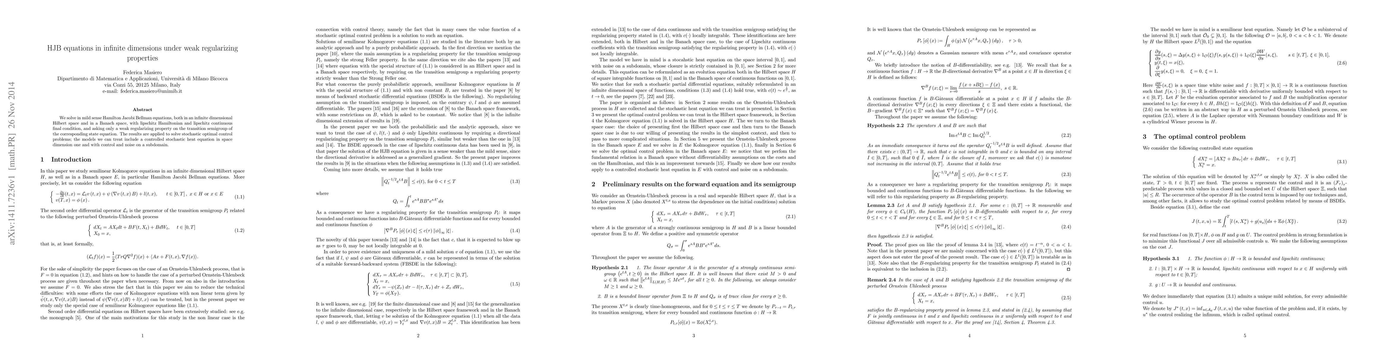 This paper solves Hamilton Jacobi Bellman (HJB) equations in infinite dimensions under weak regularizing conditions, applicable to both Hilbert and Banach spaces, and uses the results to address stochastic optimal control problems, including a controlled stochastic heat equation.