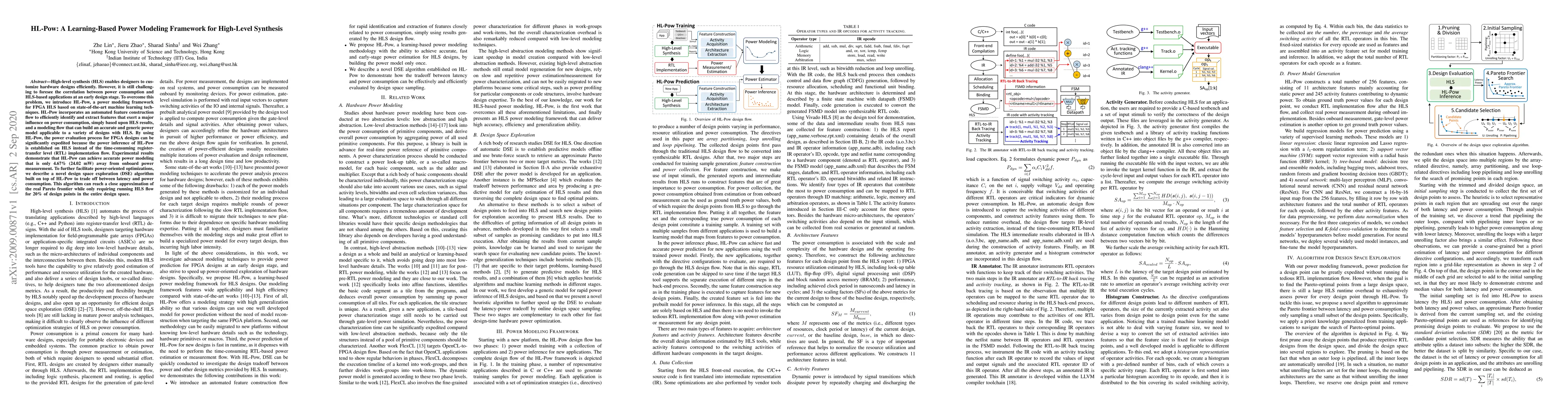 HL-Pow is a machine learning-based power modeling framework for FPGA high-level synthesis, which automates feature extraction and builds accurate power models to expedite power evaluation. It enables efficient design space exploration for optimizing latency and power trade-offs with minimal HLS runs.
