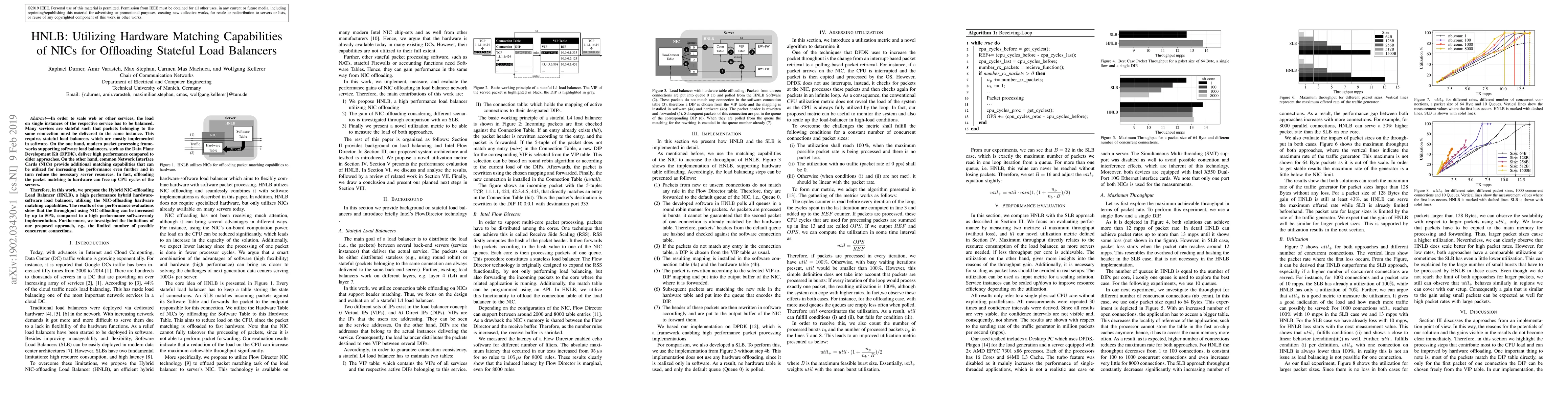 In order to scale web or other services, the load on single instances of the respective service has to be balanced. Many services are stateful such that packets belonging to the same connection must be delivered to the same instance. This requires stateful load balancers which are mostly implemented in software. On the one hand, modern packet processing frameworks supporting software load balancers, such as the Data Plane Development Kit (DPDK), deliver high performance compared to older approaches. On the other hand, common Network Interface Cards (NICs) provide additional matching capabilities that can be utilized for increasing the performance even further and in turn reduce the necessary server resources. In fact, offloading the packet matching to hardware can free up CPU cycles of the servers. Therefore, in this work, we propose the Hybrid NIC-offloading Load Balancer (HNLB), a high performance hybrid hardware-software load balancer, utilizing the NIC-offloading hardware matching capabilities. The results of our performance evaluations show that the throughput using NIC offloading can be increased by up to 50%, compared to a high performance software-only implementation. Furthermore, we investigated the limitations of our proposed approach, e.g., the limited number of possible concurrent connections.
