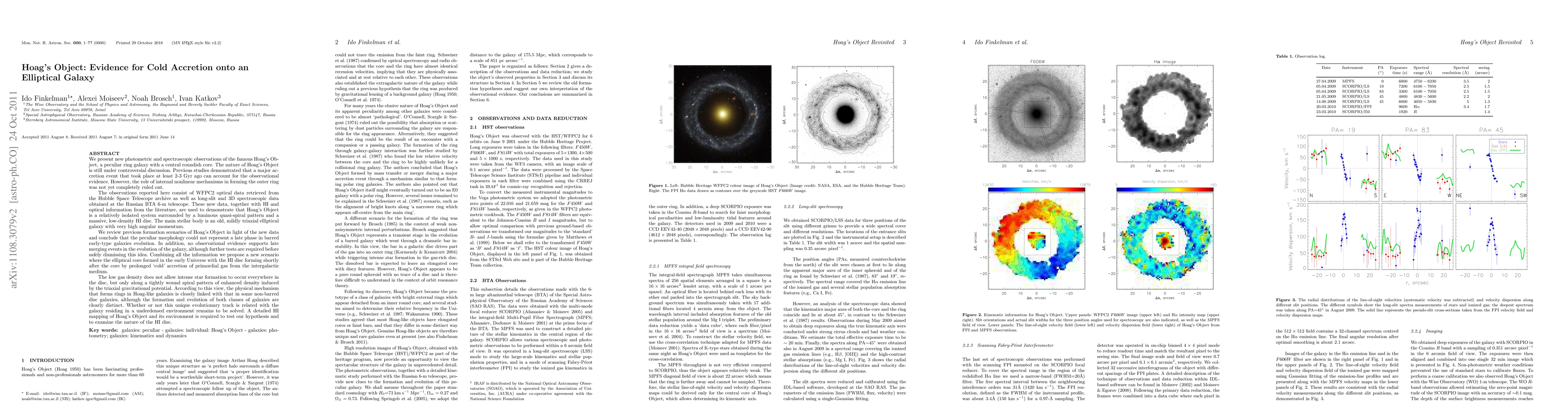 New observations support a cold accretion scenario for Hoag's Object, proposing an elliptical core formed early in the Universe with gas accreted through a spiral pattern, contrasting previous theories of late galaxy mergers or barred galaxy evolution.