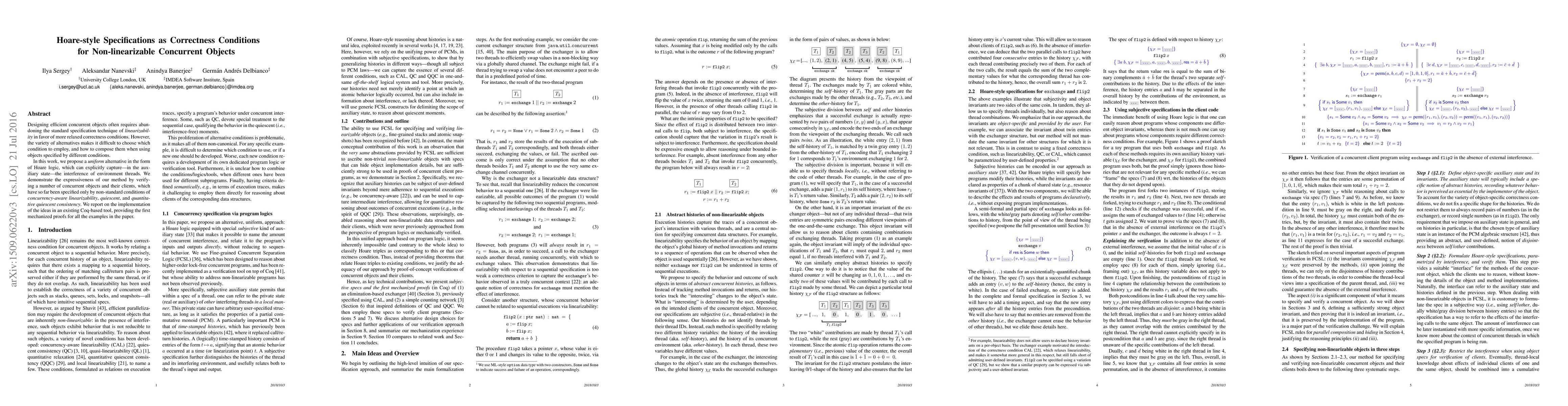 This paper proposes using Hoare-style program logics to specify and verify safety properties for non-linearizable concurrent objects, addressing the challenges of choosing and composing various correctness conditions. It demonstrates the practical application of an existing program logic in Coq to capture state and history invariants, providing intuitive specifications for previously complex objects.