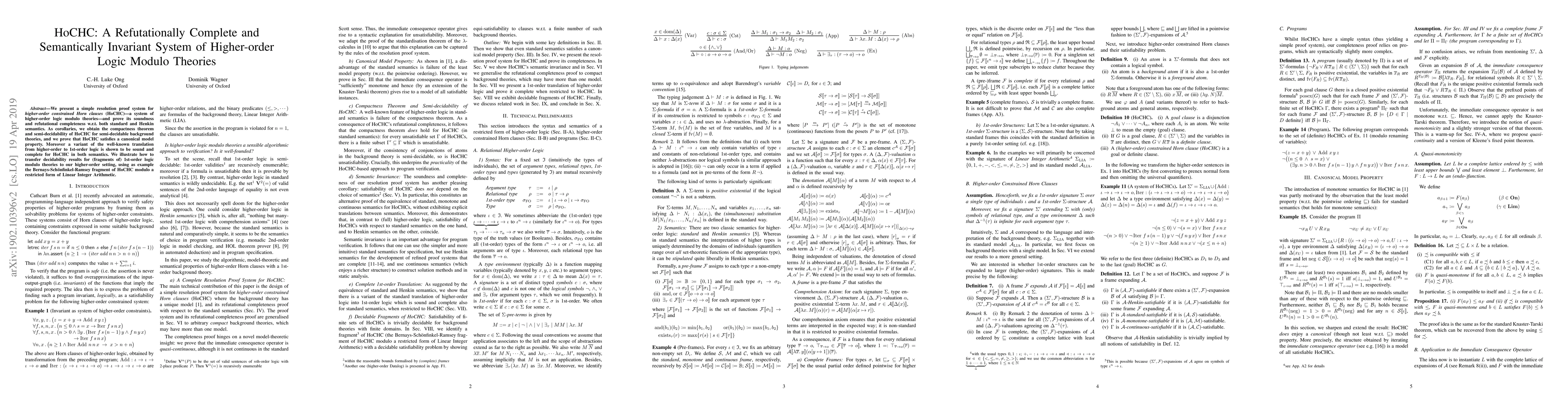 This paper introduces a resolution proof system for higher-order logic modulo theories, proving its soundness, refutational completeness, and canonical model property. It also demonstrates the translation from higher-order to first-order logic and applies decidability results from first-order logic to the higher-order setting.