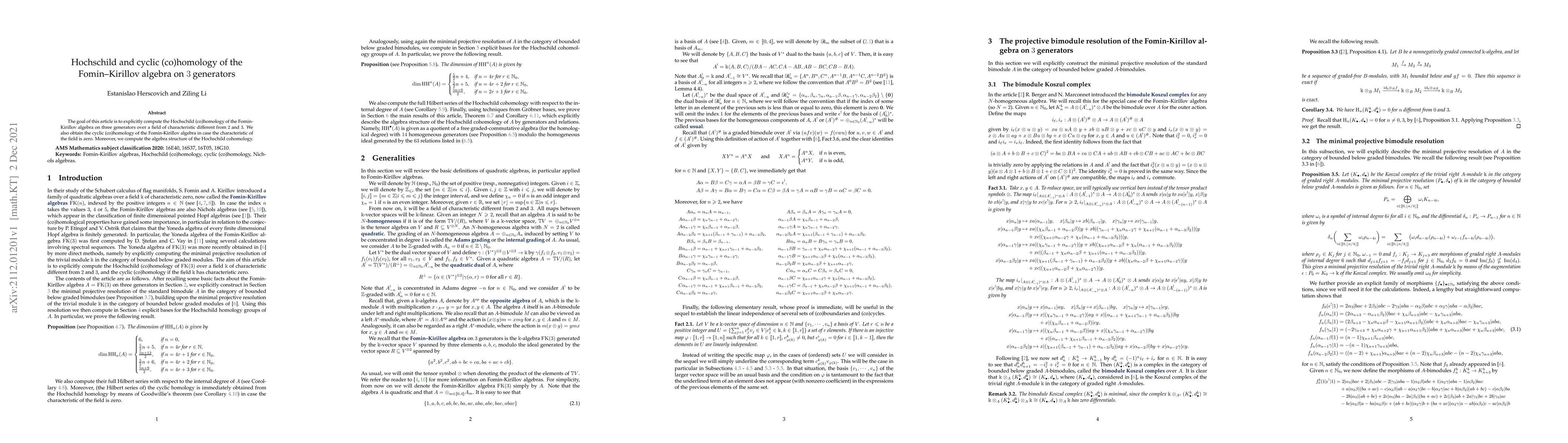 This paper computes the Hochschild (co)homology and cyclic (co)homology of the Fomin-Kirillov algebra with three generators over fields with characteristics different from 2 and 3, and determines the algebra structure of the Hochschild cohomology when the field characteristic is zero.