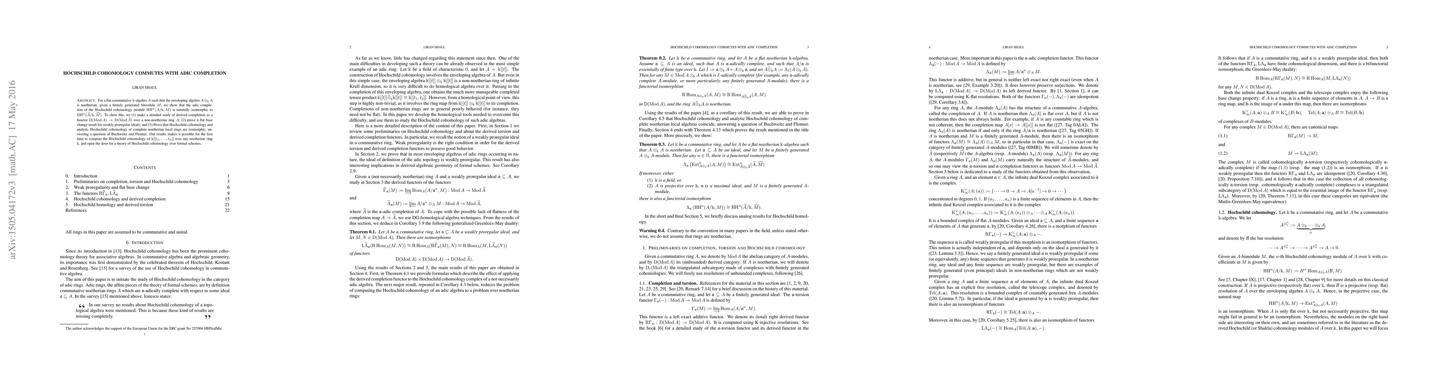 This paper demonstrates that adic completion commutes with Hochschild cohomology for a flat commutative $k$-algebra $A$, showing an isomorphism between the adic completions of Hochschild cohomology modules. It achieves this by studying derived completion, proving a flat base change result for weakly proregular ideals, and establishing the isomorphism between Hochschild and analytic Hochschild cohomologies for complete noetherian local rings.