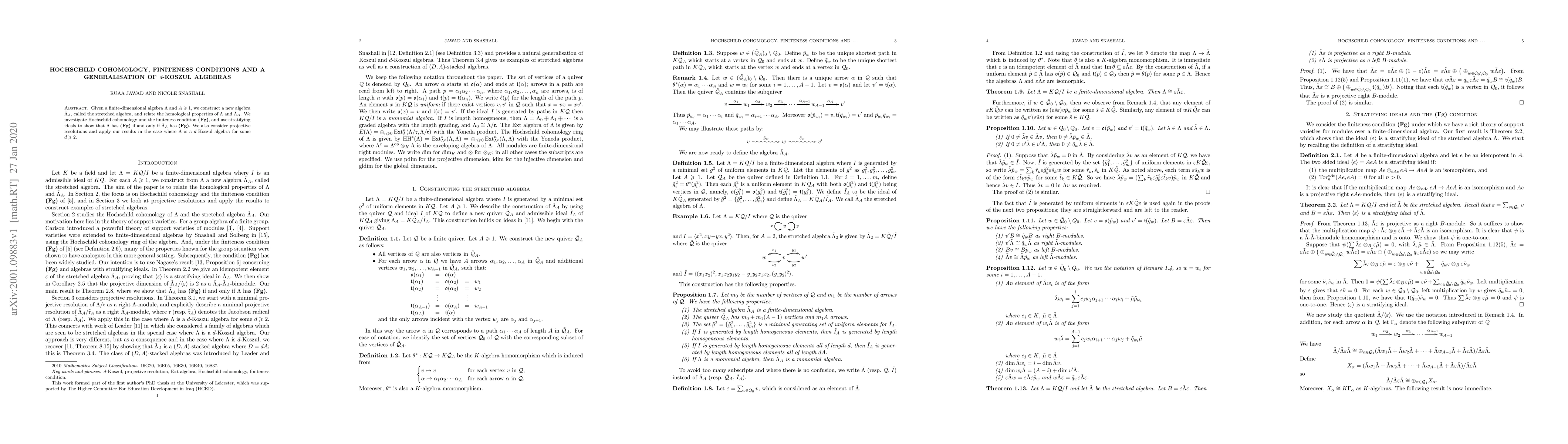 The paper constructs a stretched algebra $\tilde{\Lambda}_A$ from a finite-dimensional algebra $\Lambda$ and explores its homological properties, showing that $\Lambda$ satisfies the finiteness condition (Fg) if and only if $\tilde{\Lambda}_A$ does. It applies these results specifically to $d$-Koszul algebras.