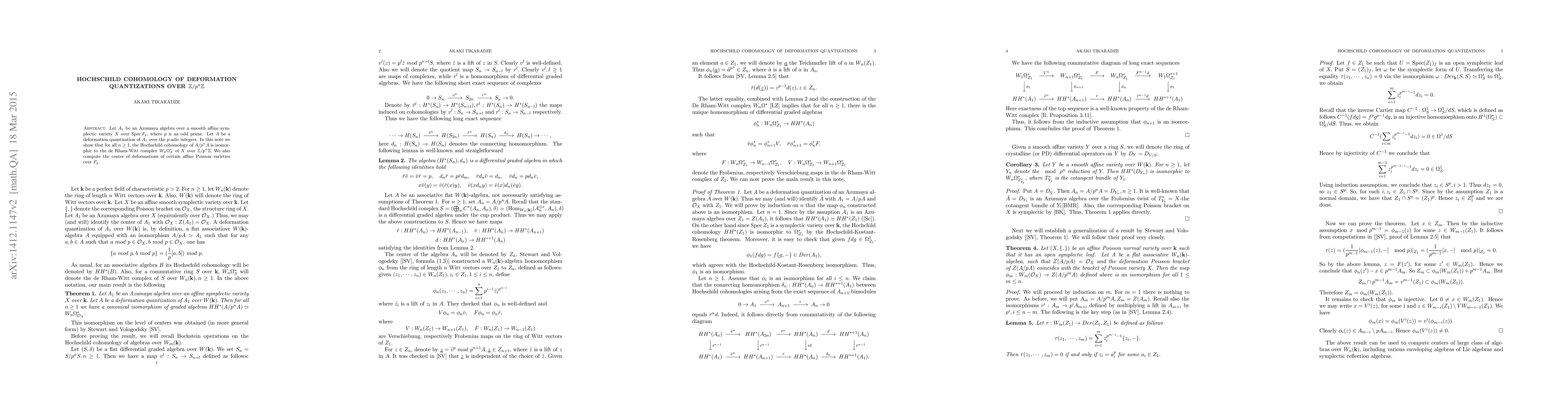 This paper proves that the Hochschild cohomology of deformation quantizations of affine smooth symplectic varieties over $\mathbb{Z}/p^n\mathbb{Z}$ is isomorphic to the de Rham-Witt complex. It also computes centers of deformations for certain affine Poisson varieties over $\mathbb{Z}/p\mathbb{Z}$.