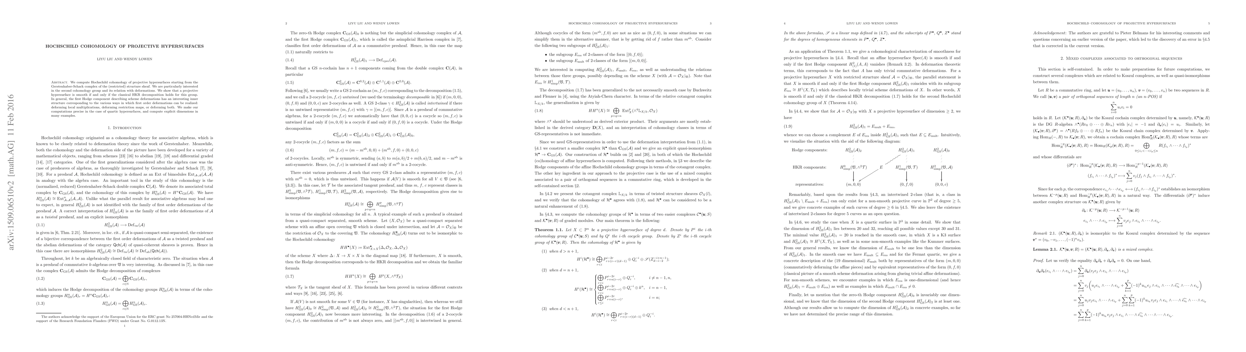 This paper computes the Hochschild cohomology of projective hypersurfaces using the Gerstenhaber-Schack complex, focusing on the second cohomology group and its relation to deformations. It demonstrates that smoothness of the hypersurface corresponds to the validity of the classical HKR decomposition for this group.