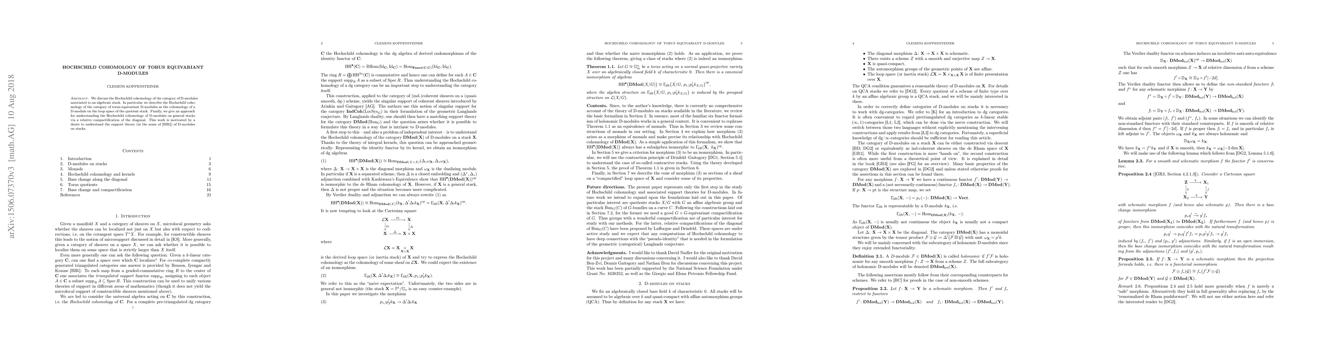 This paper explores the Hochschild cohomology of torus-equivariant D-modules on algebraic stacks, identifying it with the cohomology of a D-module on the loop space of the quotient stack. It also proposes a method for generalizing this understanding via relative compactification of the diagonal.