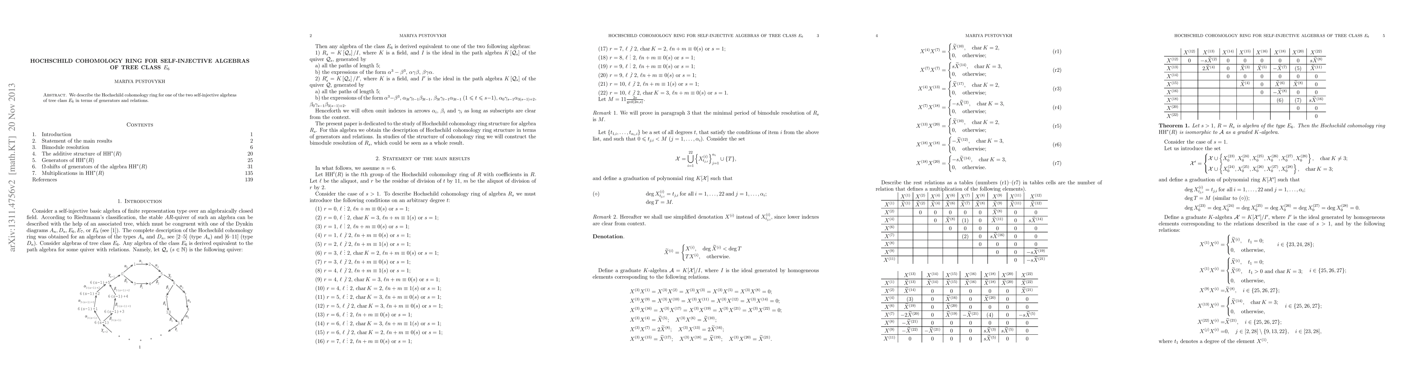 This paper investigates the Hochschild cohomology ring of a self-injective algebra associated with the $E_6$ Dynkin diagram, providing a detailed description of its structure in terms of generators and relations. The focus is on understanding the cohomological properties of this specific algebraic object.