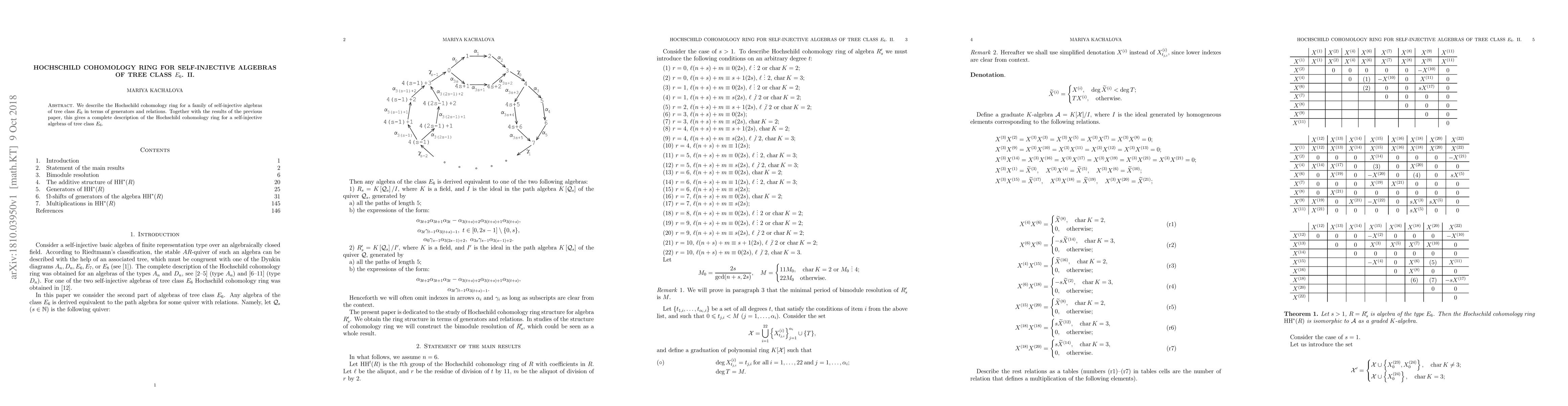 This paper provides a detailed description of the Hochschild cohomology ring for self-injective algebras of tree class $E_6$, specifying generators and relations. Combined with previous work, it completes the characterization of these algebras' Hochschild cohomology rings.