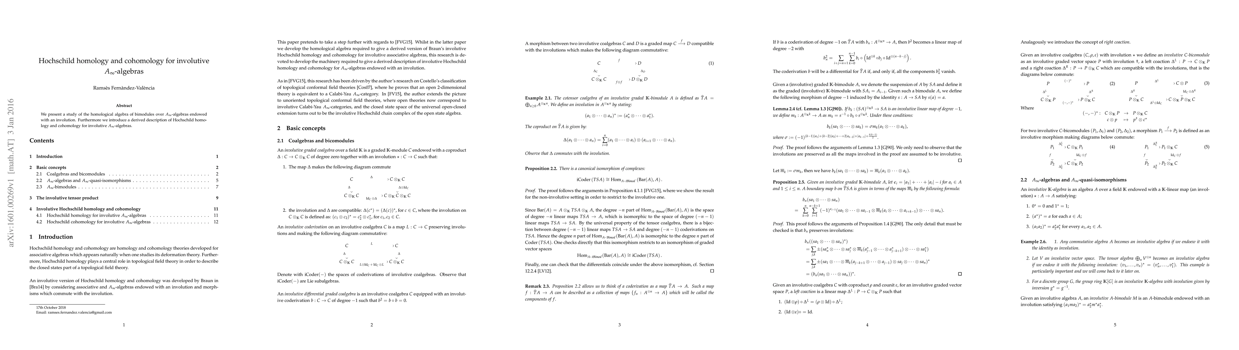 This paper investigates the homological algebra of bimodules over involutive $A_\infty$-algebras and proposes a derived framework for understanding Hochschild homology and cohomology in this context.