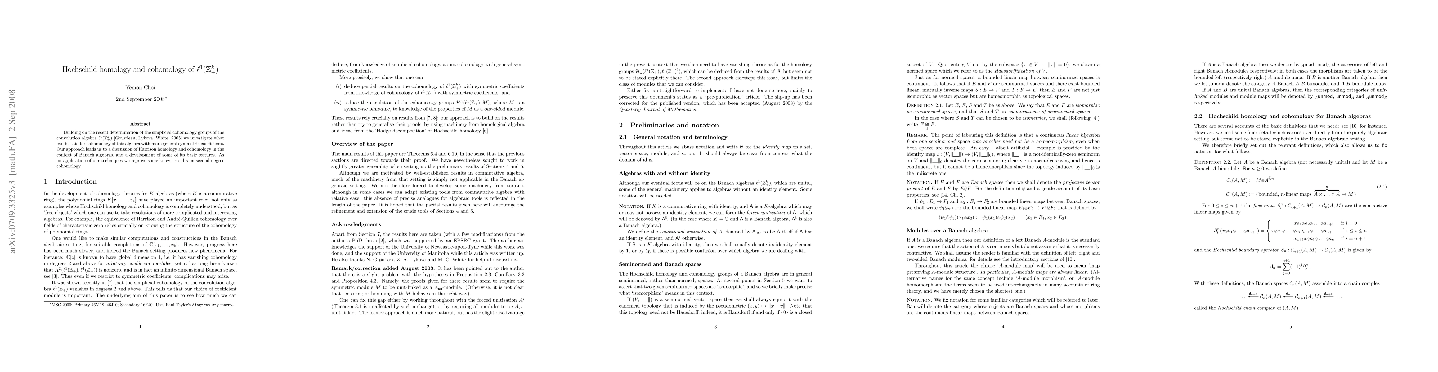 Building on the recent determination of the simplicial cohomology groups of the convolution algebra ${\ell}^1({\mathbb Z}_+^k)$ [Gourdeau, Lykova, White, 2005] we investigate what can be said for cohomology of this algebra with more general symmetric coefficients. Our approach leads us to a discussion of Harrison homology and cohomology in the context of Banach algebras, and a development of some of its basic features. As an application of our techniques we reprove some known results on second-degree cohomology.